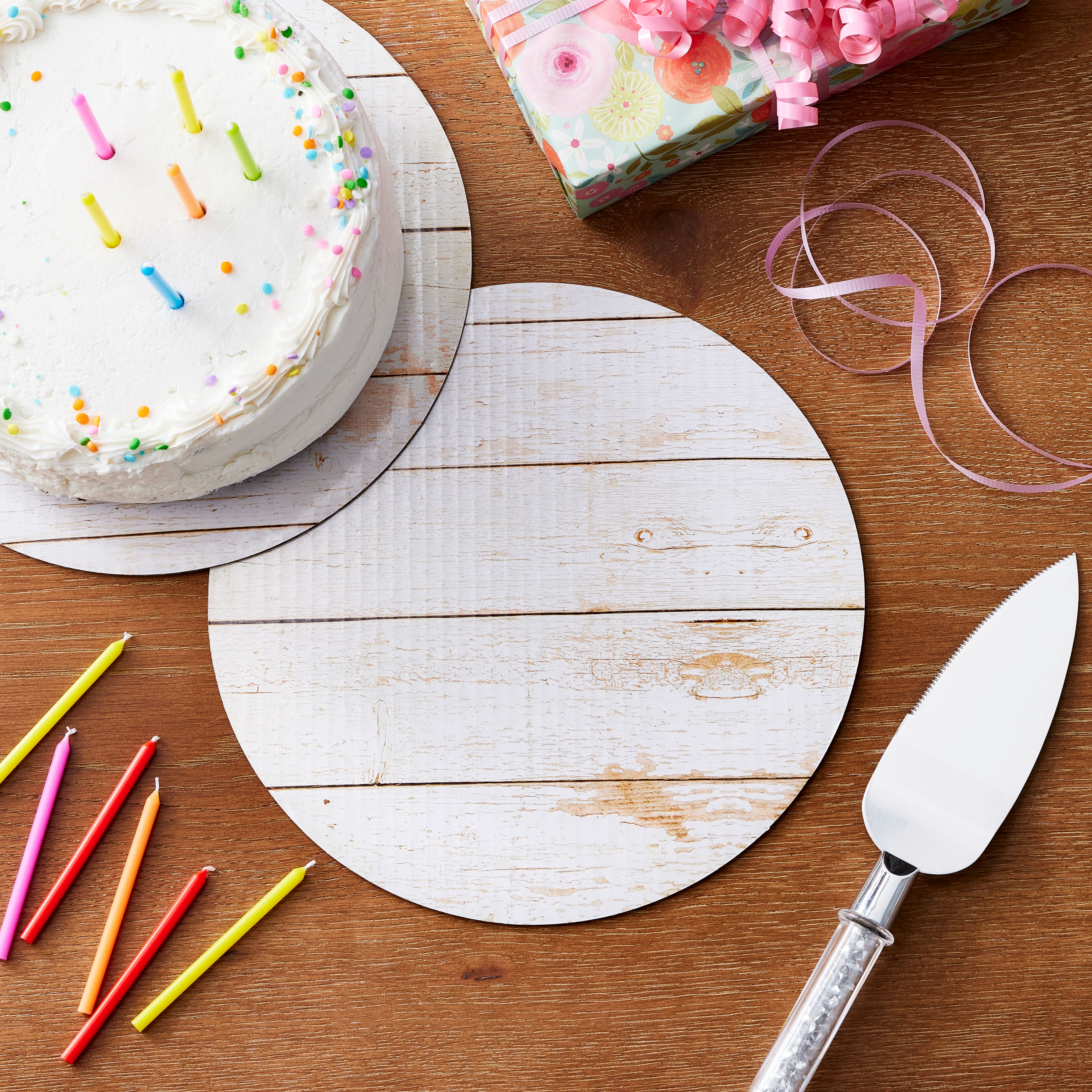 10" White Wood Grain Cake Boards by Makery®
