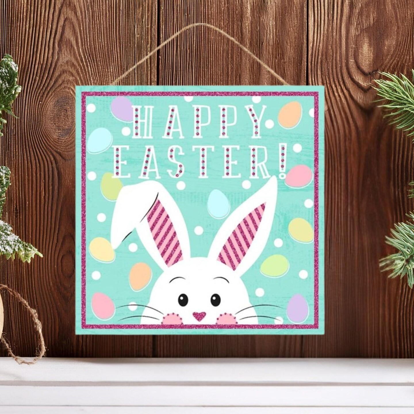 10" Wooden Sign: Glitter Happy Easter