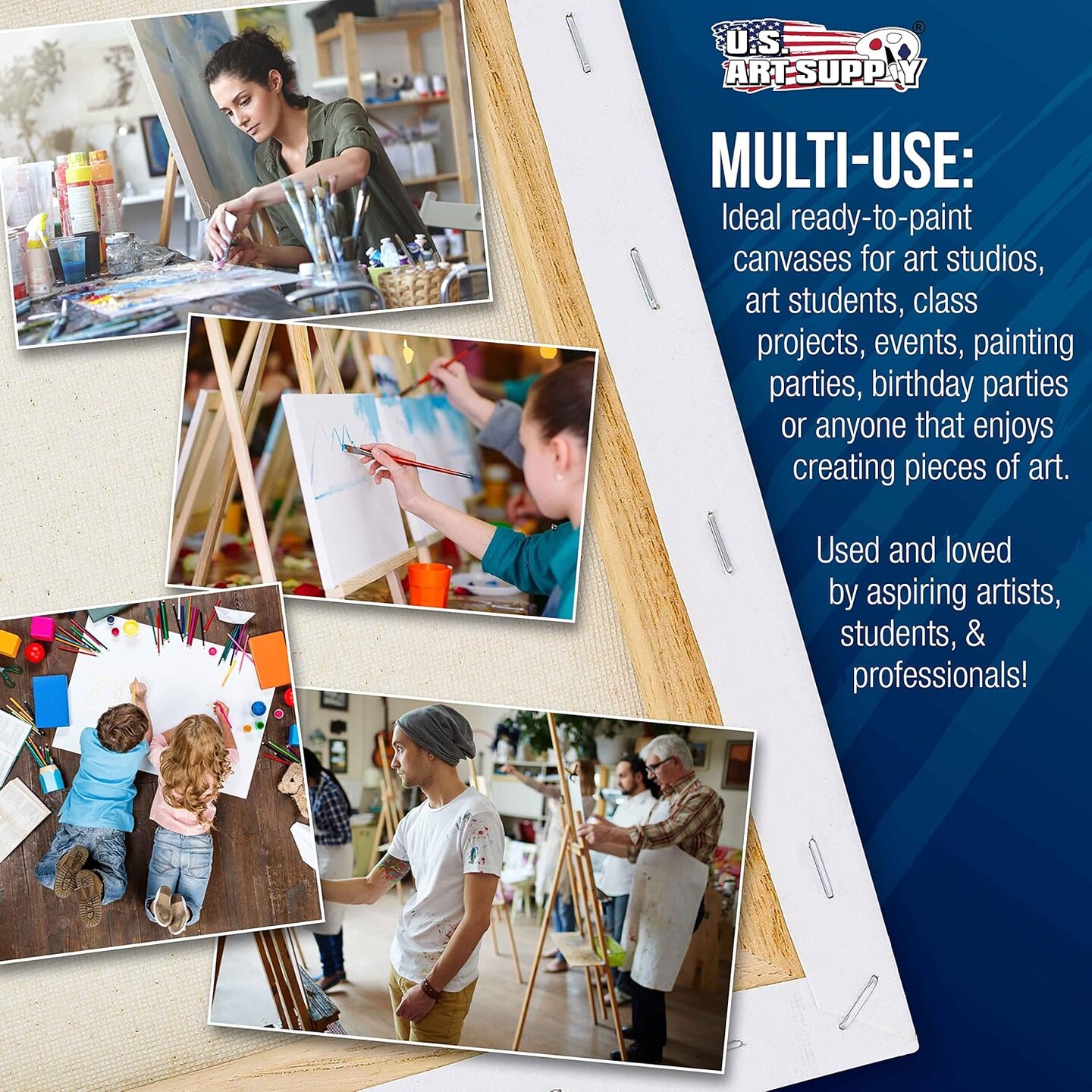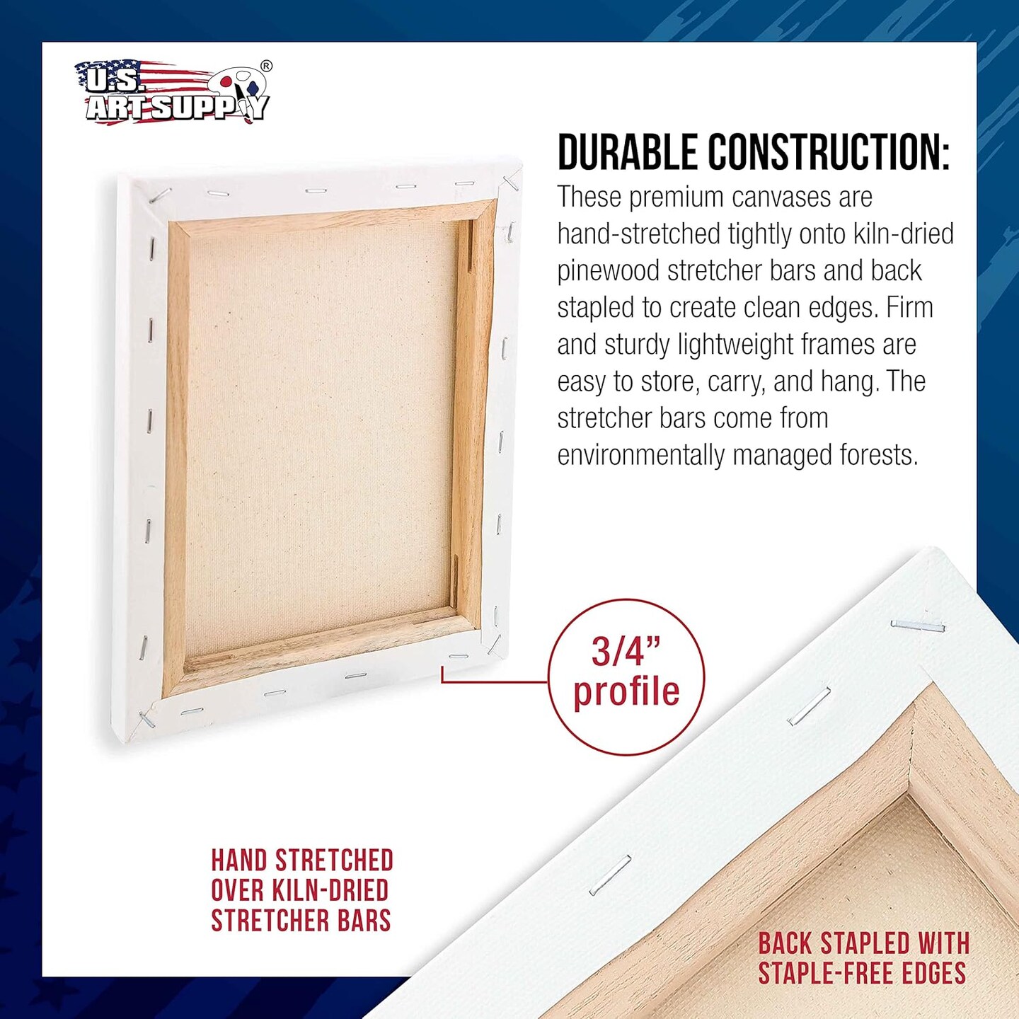 10 x 10 inch Stretched Canvas 12-Ounce Triple Primed, 6-Pack - Professional Artist Quality White Blank 3/4" Profile, 100% Cotton, Heavy-Weight Gesso - Acrylic Pouring, Oil Painting