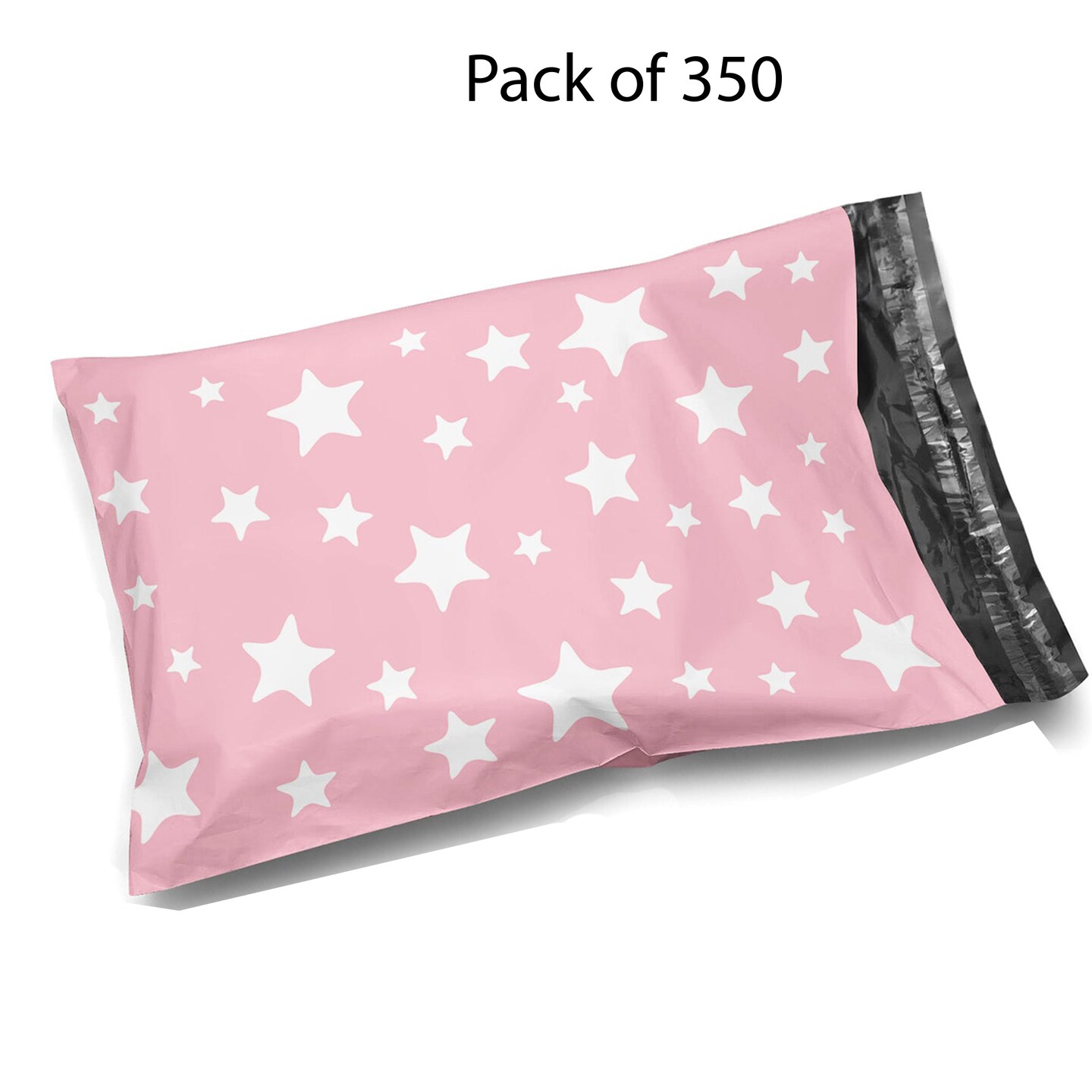 10 x 13 Glossy Light Pink and White Stars Decorative Plastic Poly Mailer Bags Waterproof Shipping Mailing Envelope 2 Mil – Permanent Adhesive Seal