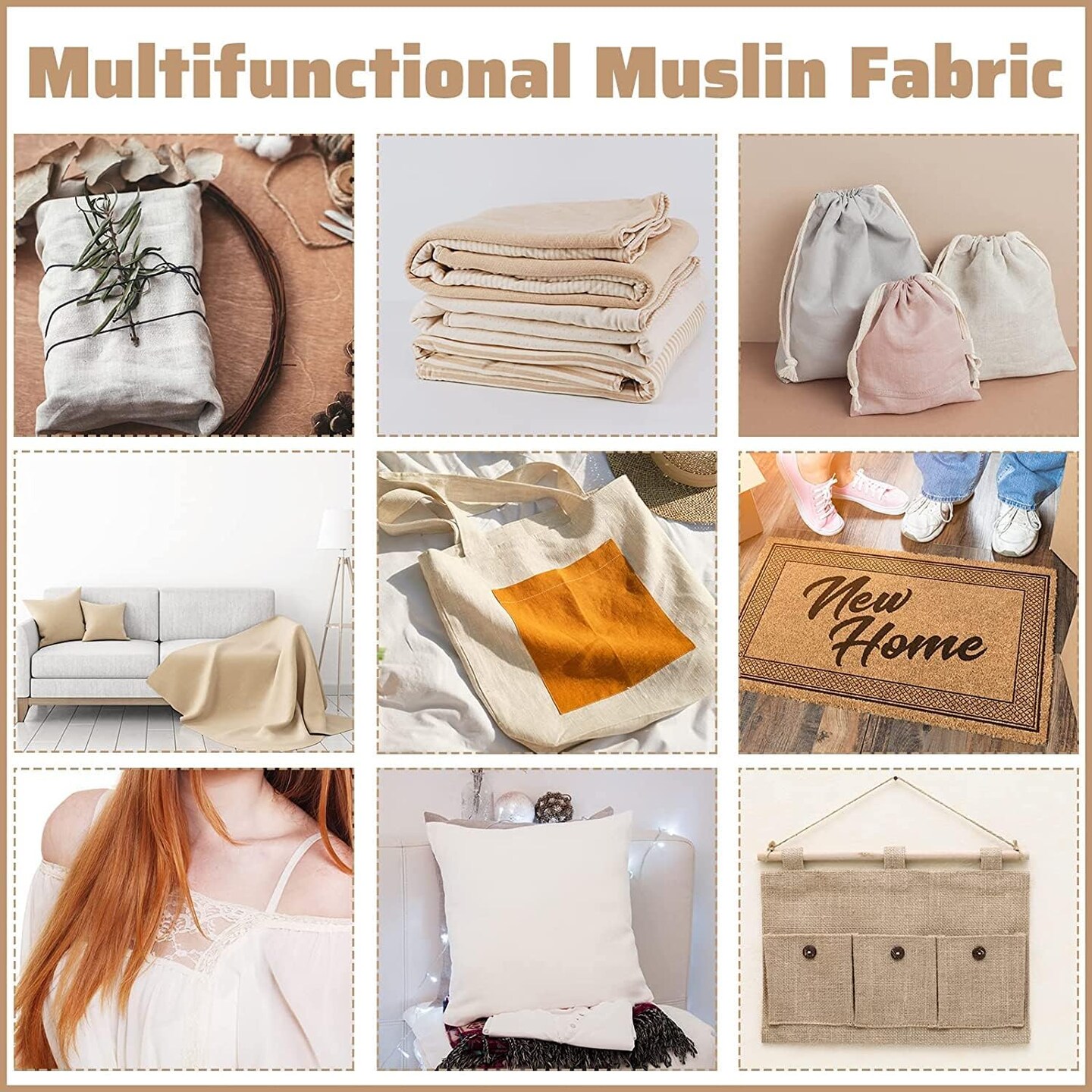 10 Yards Natural Unbleached Muslin Cotton Fabric