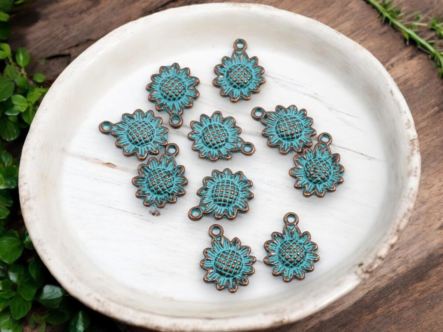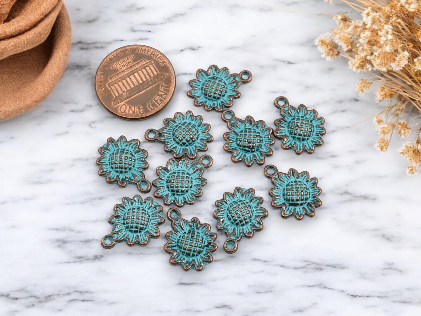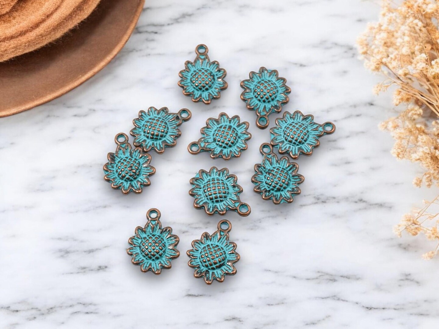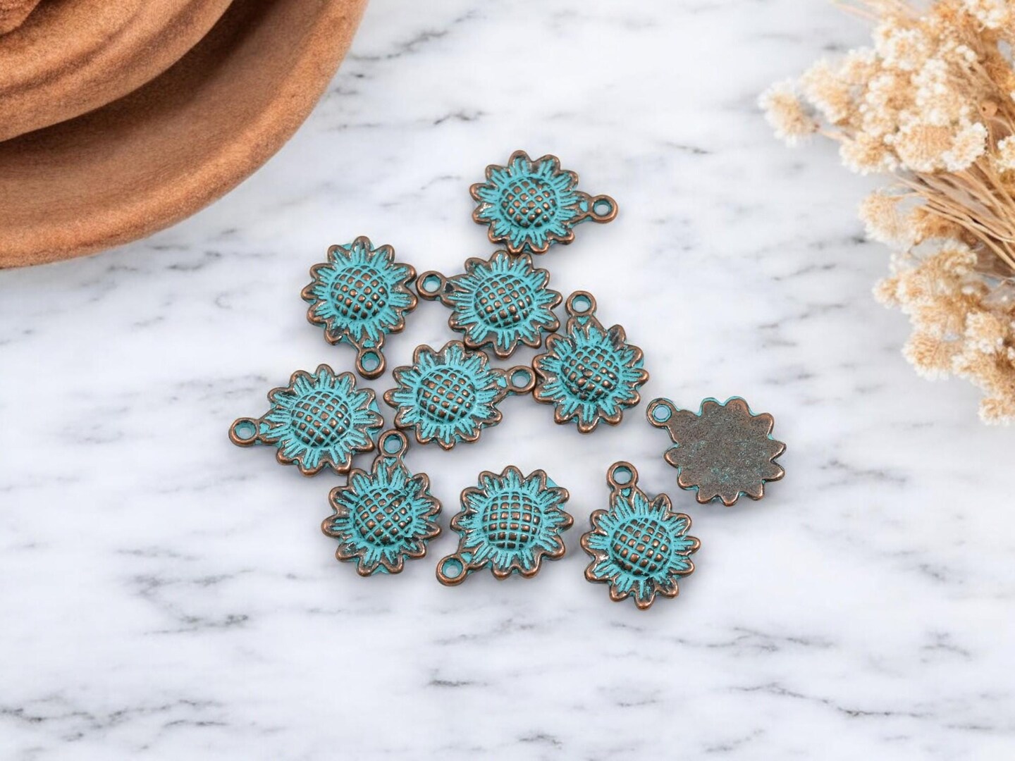 *100* 16x12mm Copper Patina Sunflower Charms