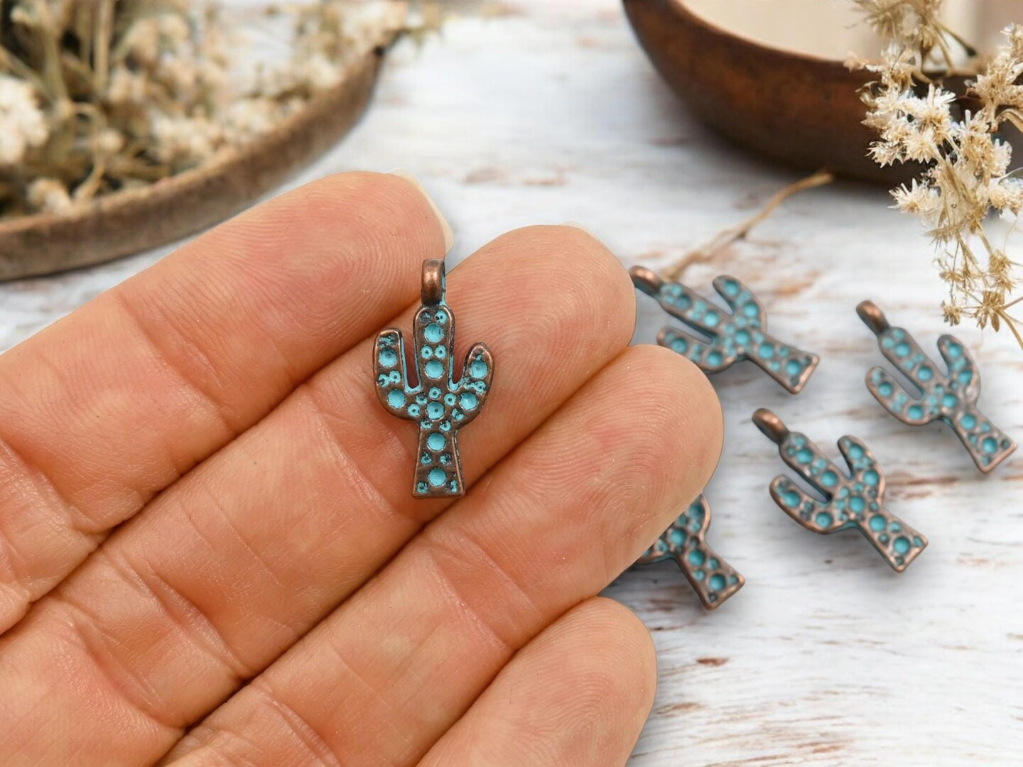 *100* 20x10mm Copper Patina Cactus Charms