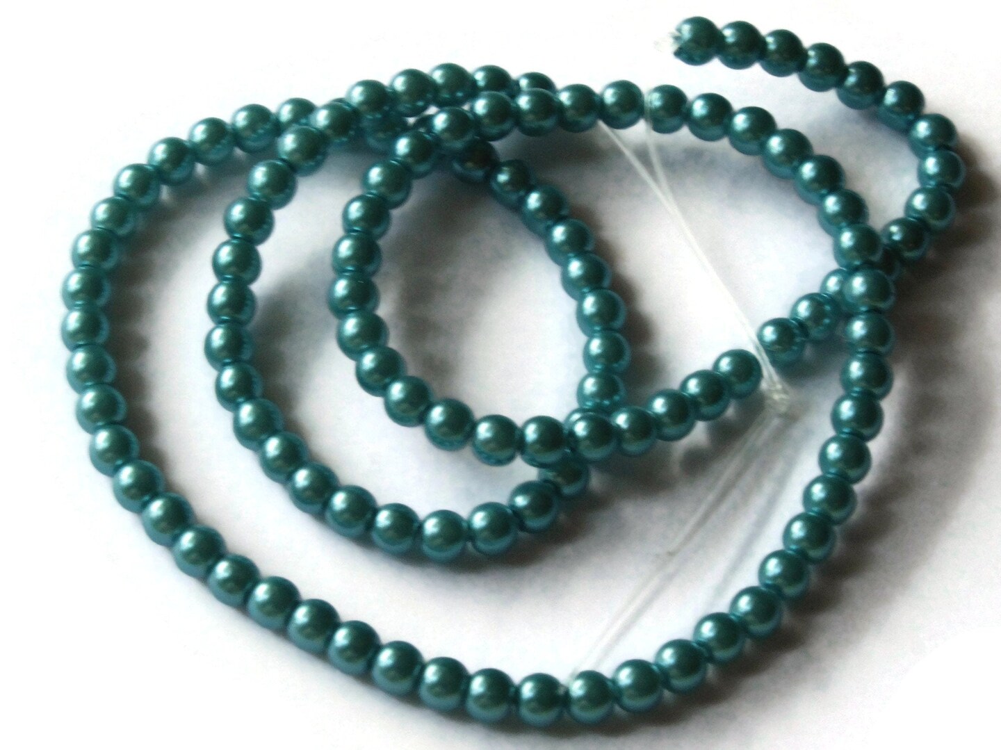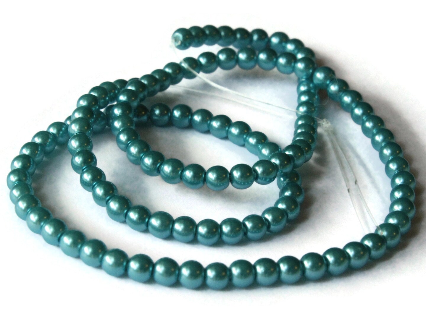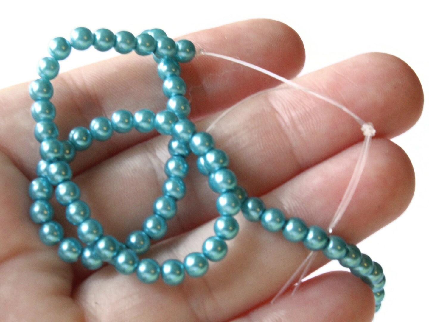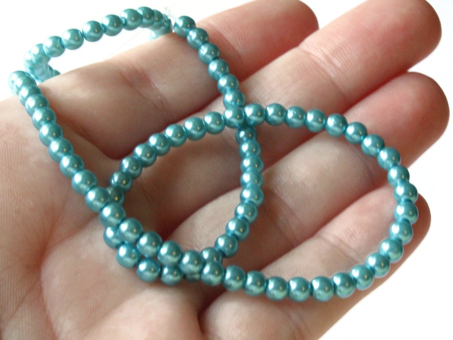 100 4mm Turquoise Blue Glass Faux Pearl Beads