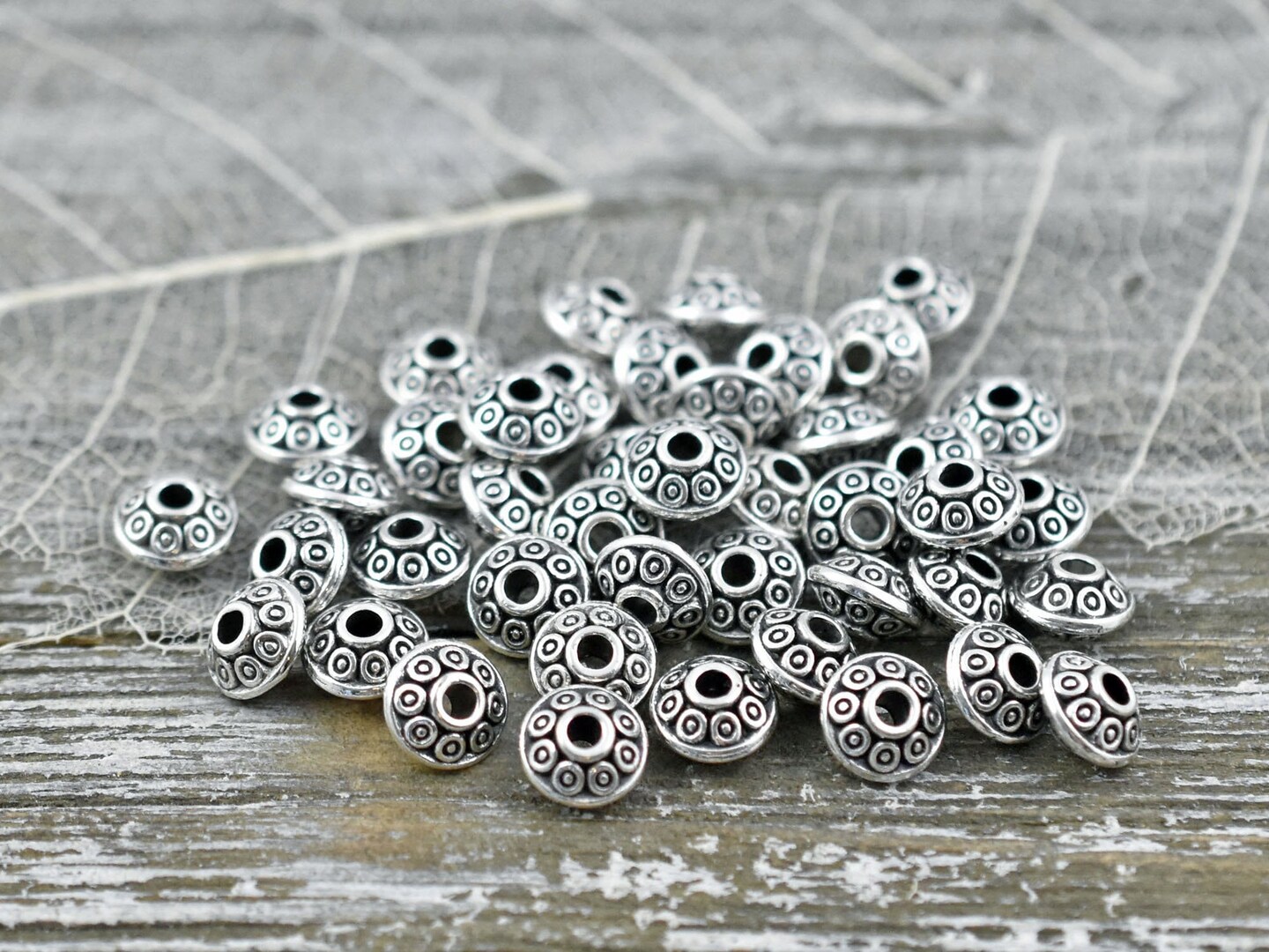 *100* 4x7mm Antique Silver Saucer Rondelle Spacer Beads