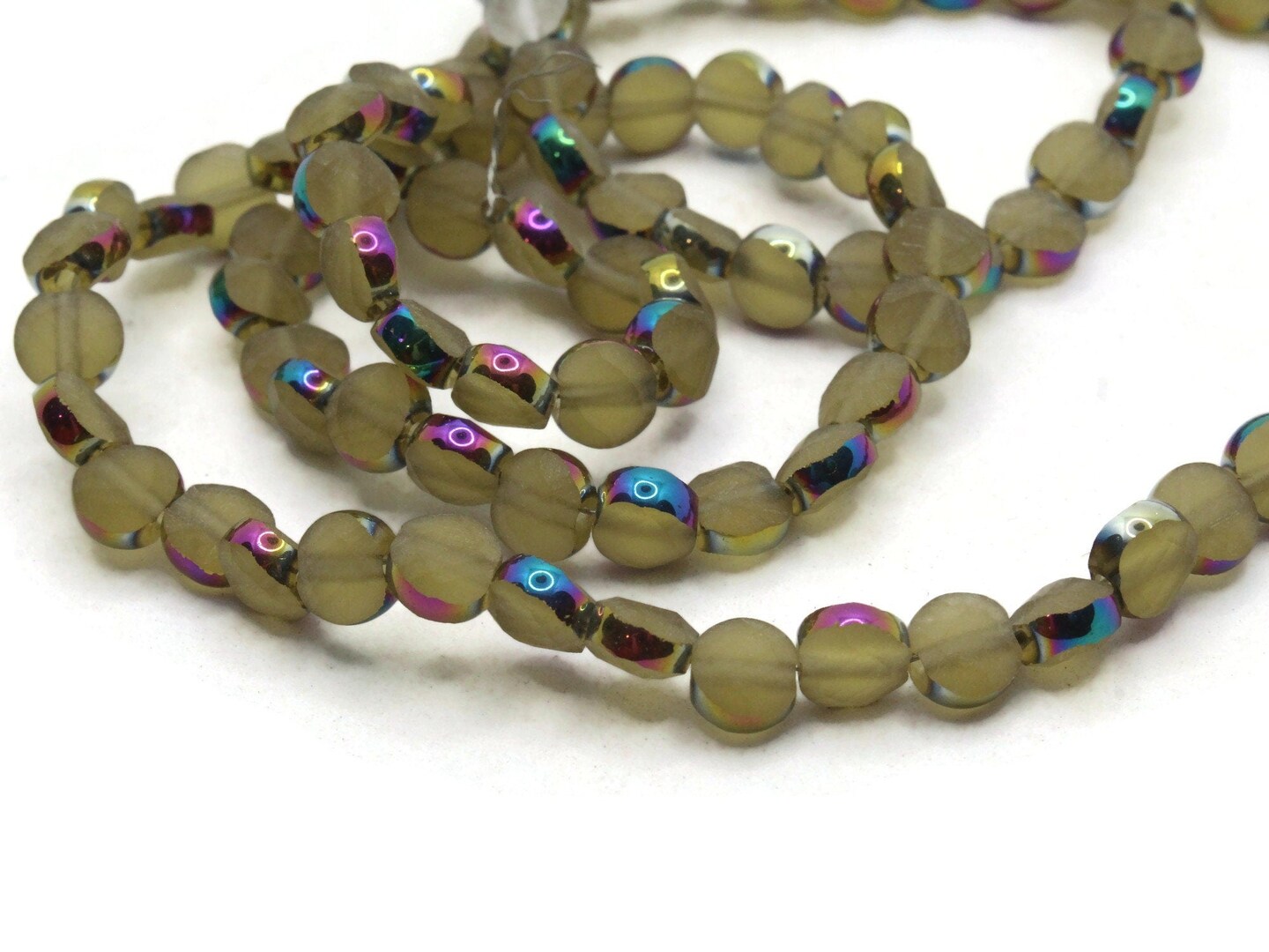 100 6mm Rainbow Rimmed Yellow Glass Faceted Coin Beads