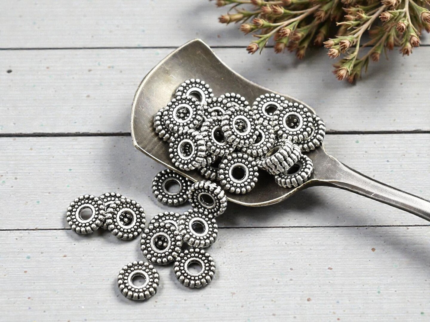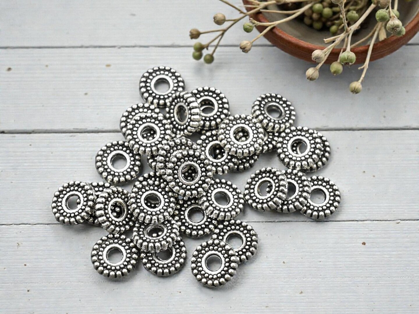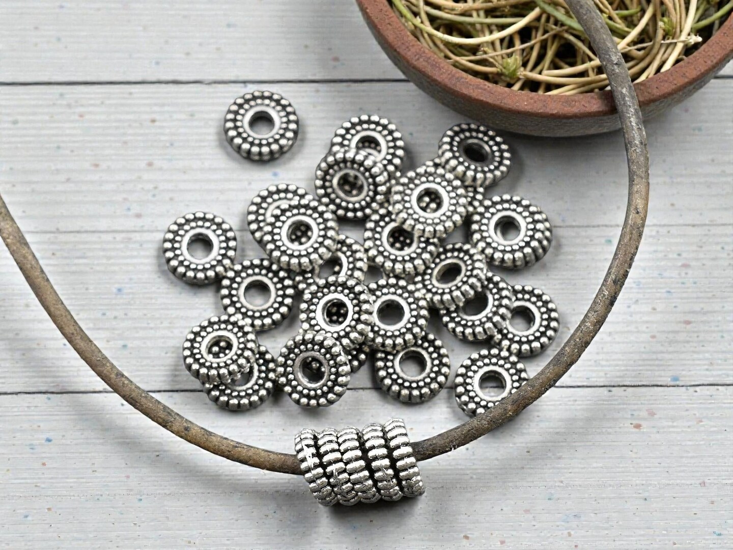 *100* 7x2mm Antique Silver Ridged Rondelle Beads