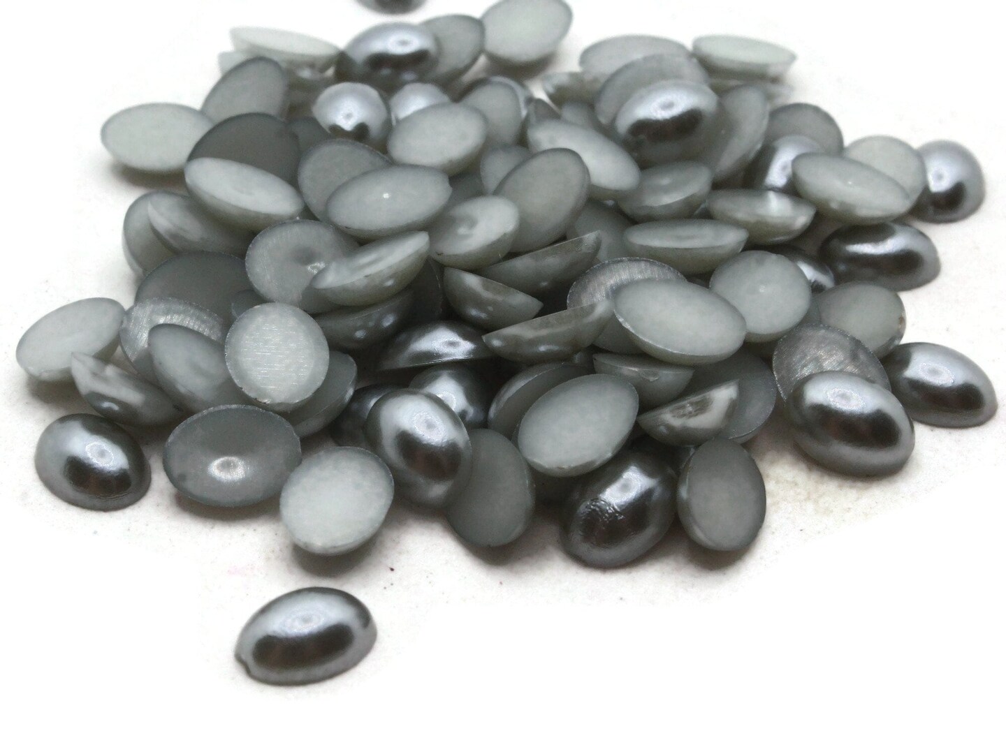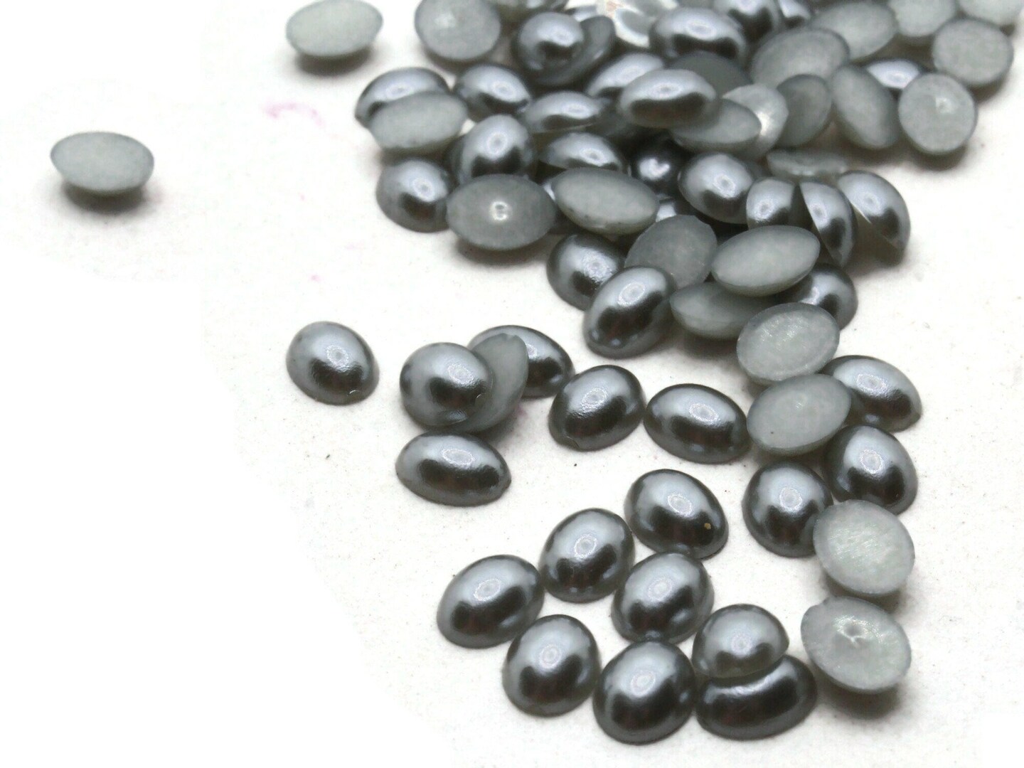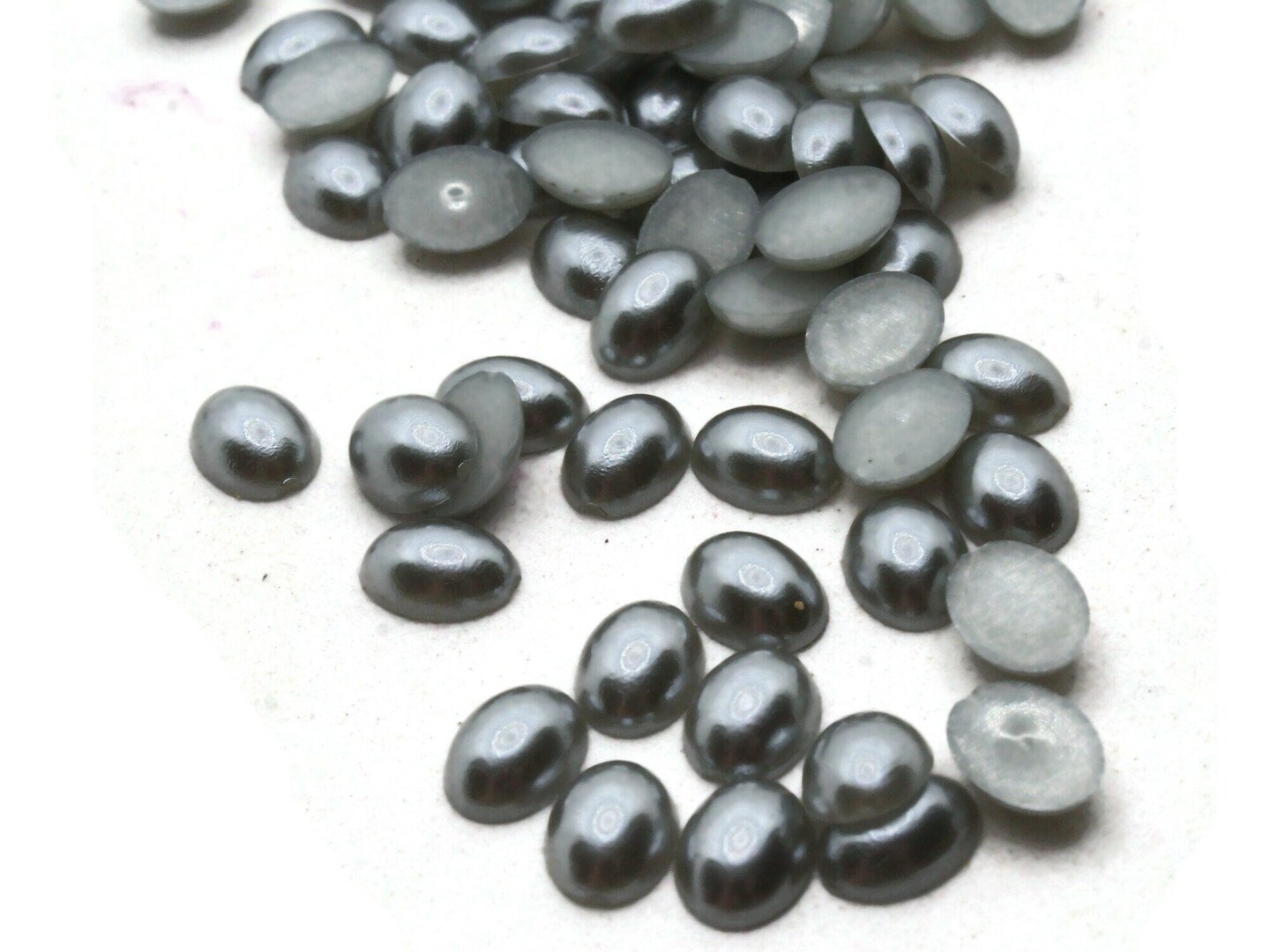 100 8mm x 6mm Gray Pearl Oval Plastic Flatback Cabochons