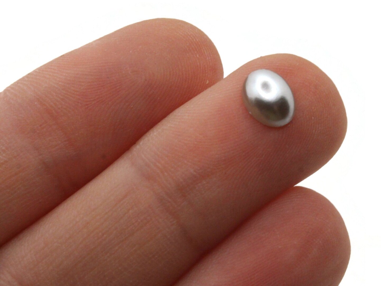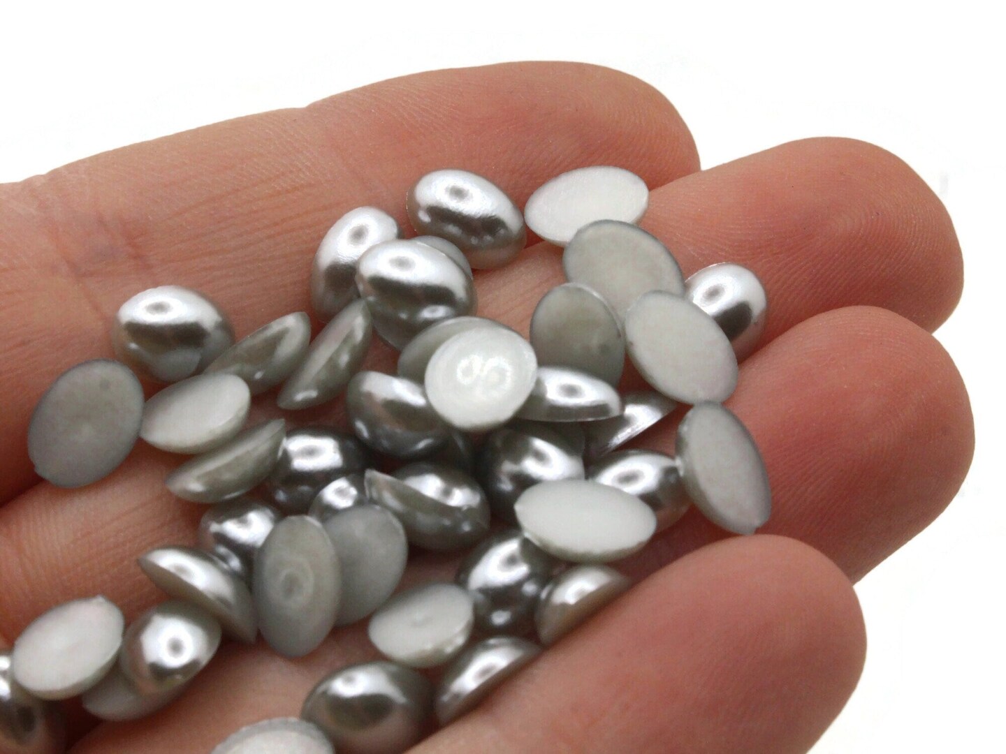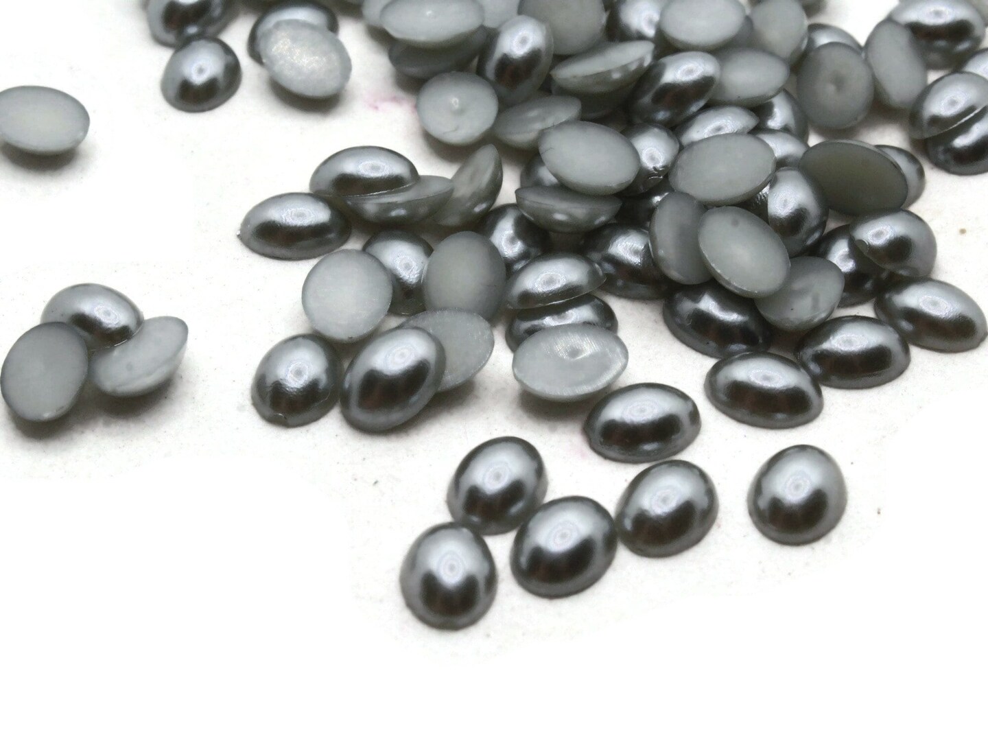 100 8mm x 6mm Gray Pearl Oval Plastic Flatback Cabochons