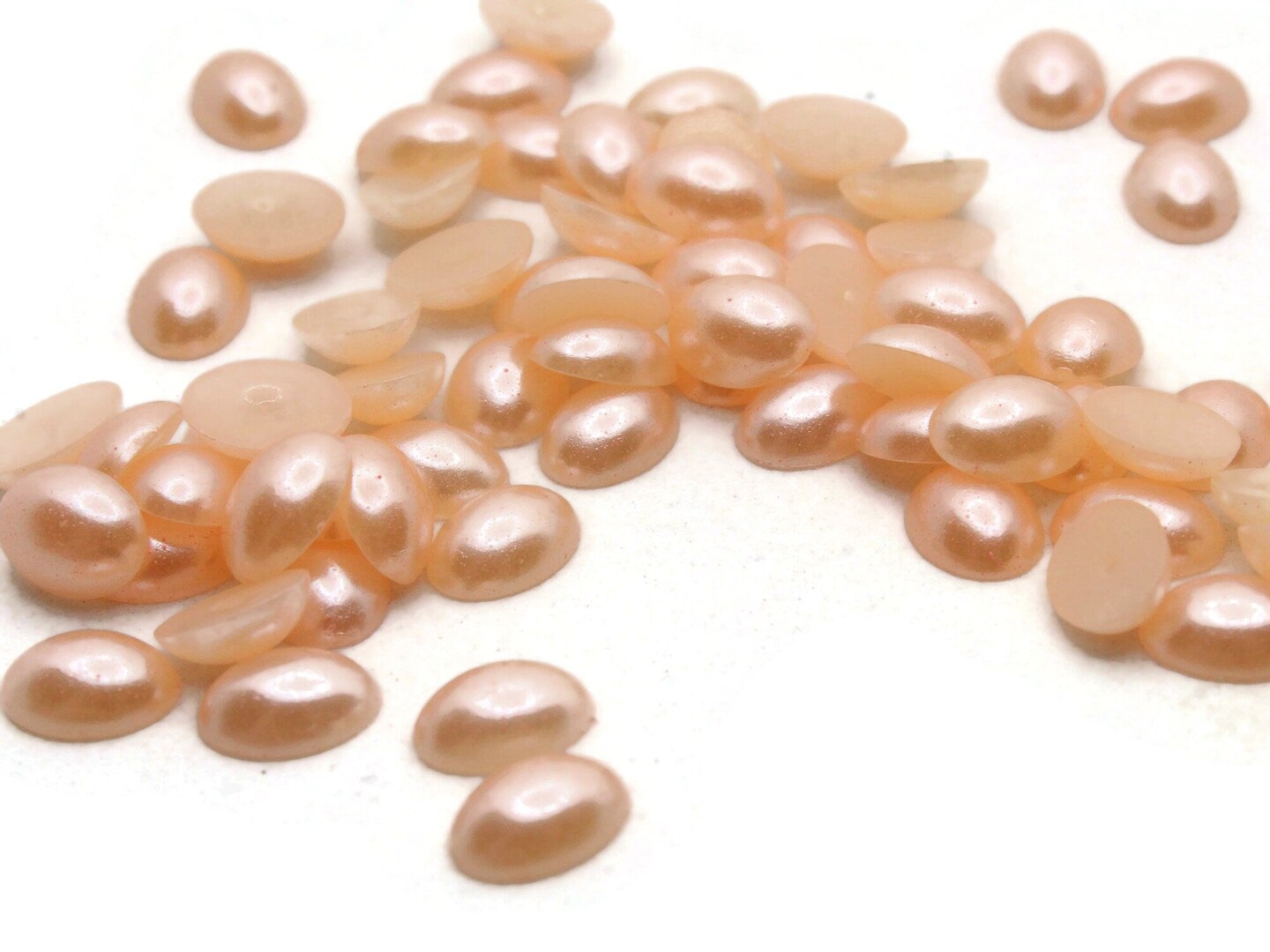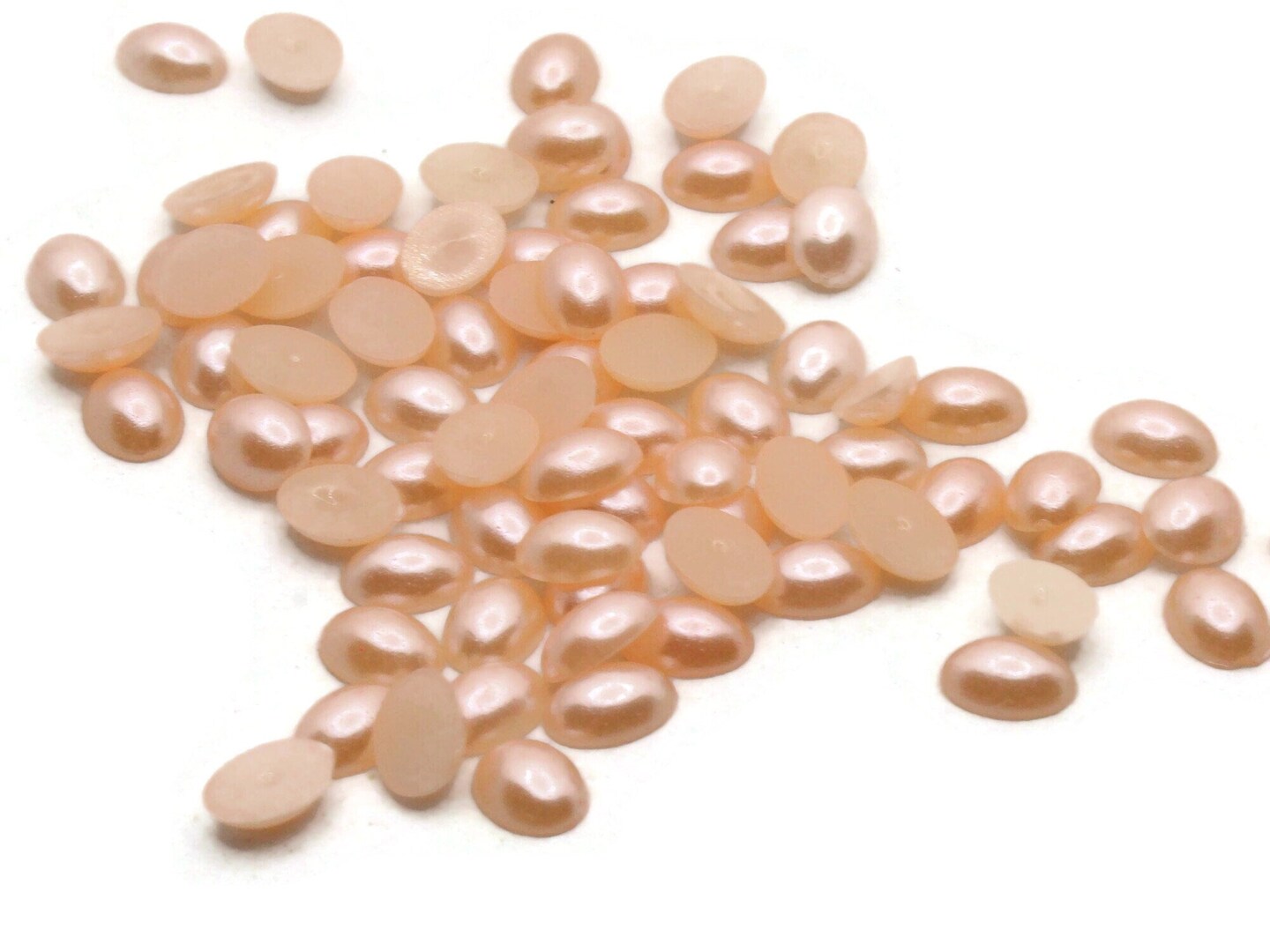 100 8mm x 6mm Peach Pink Pearl Oval Flatback Plastic Cabochons