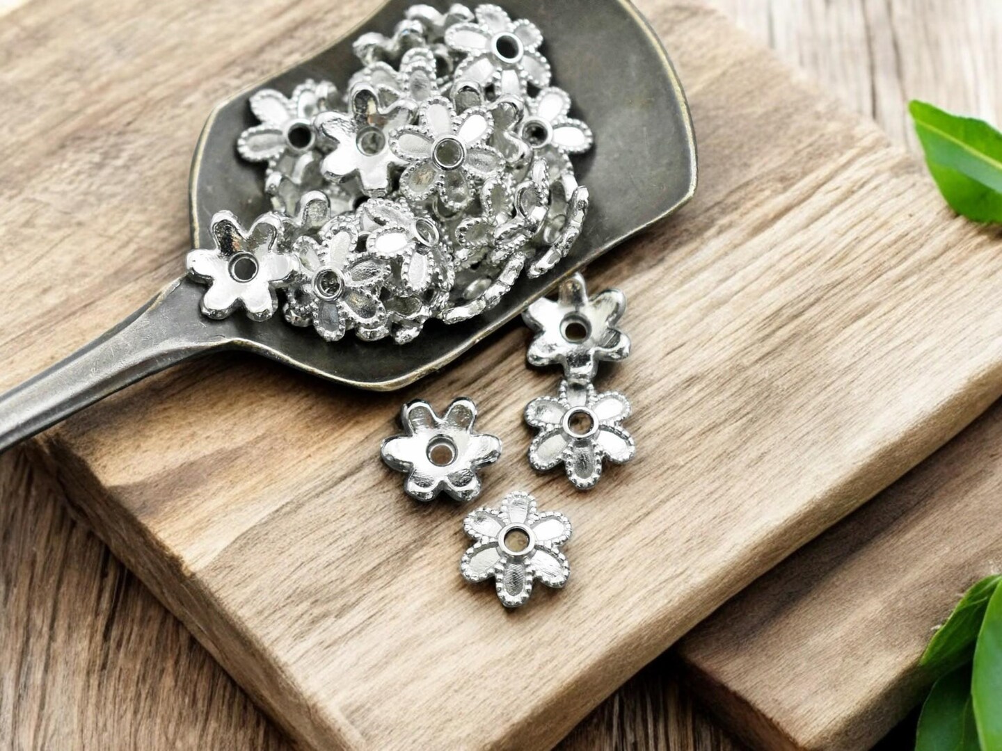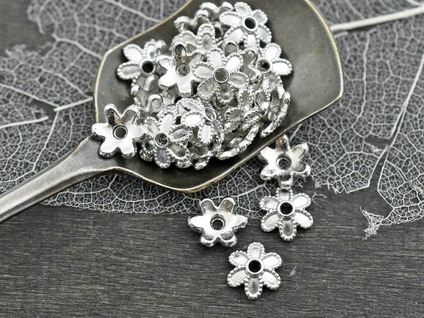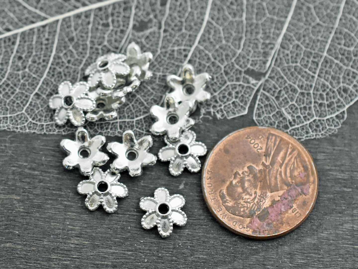 *100* 8x2mm Platinum Silver Bead Caps