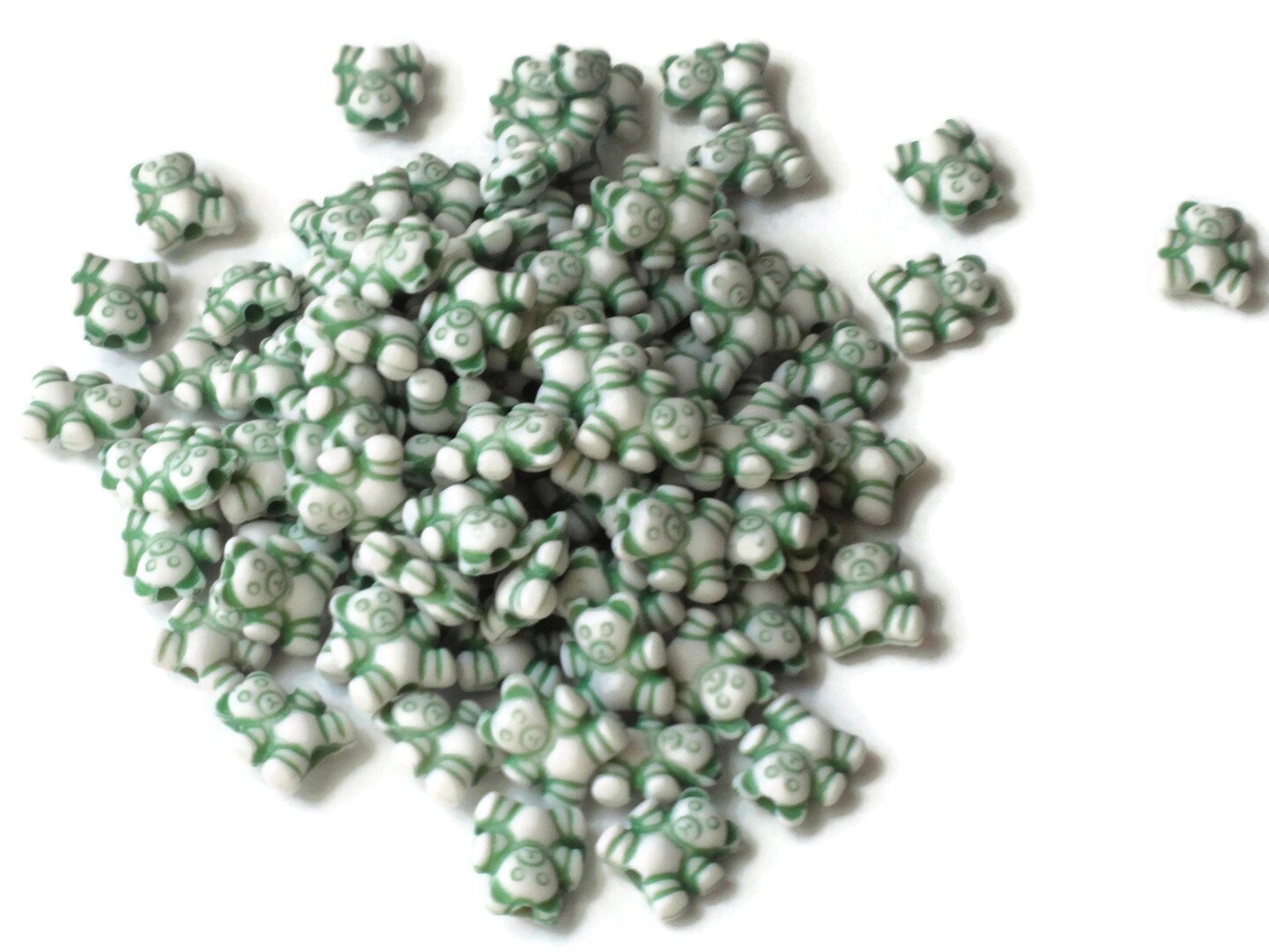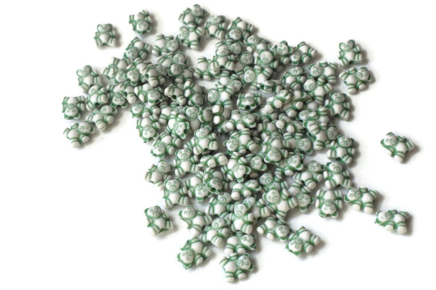 100 9mm Green Teddy Bear Beads Plastic Miniature Animal Kawaii Beads Small Cute Acrylic Toy Beads