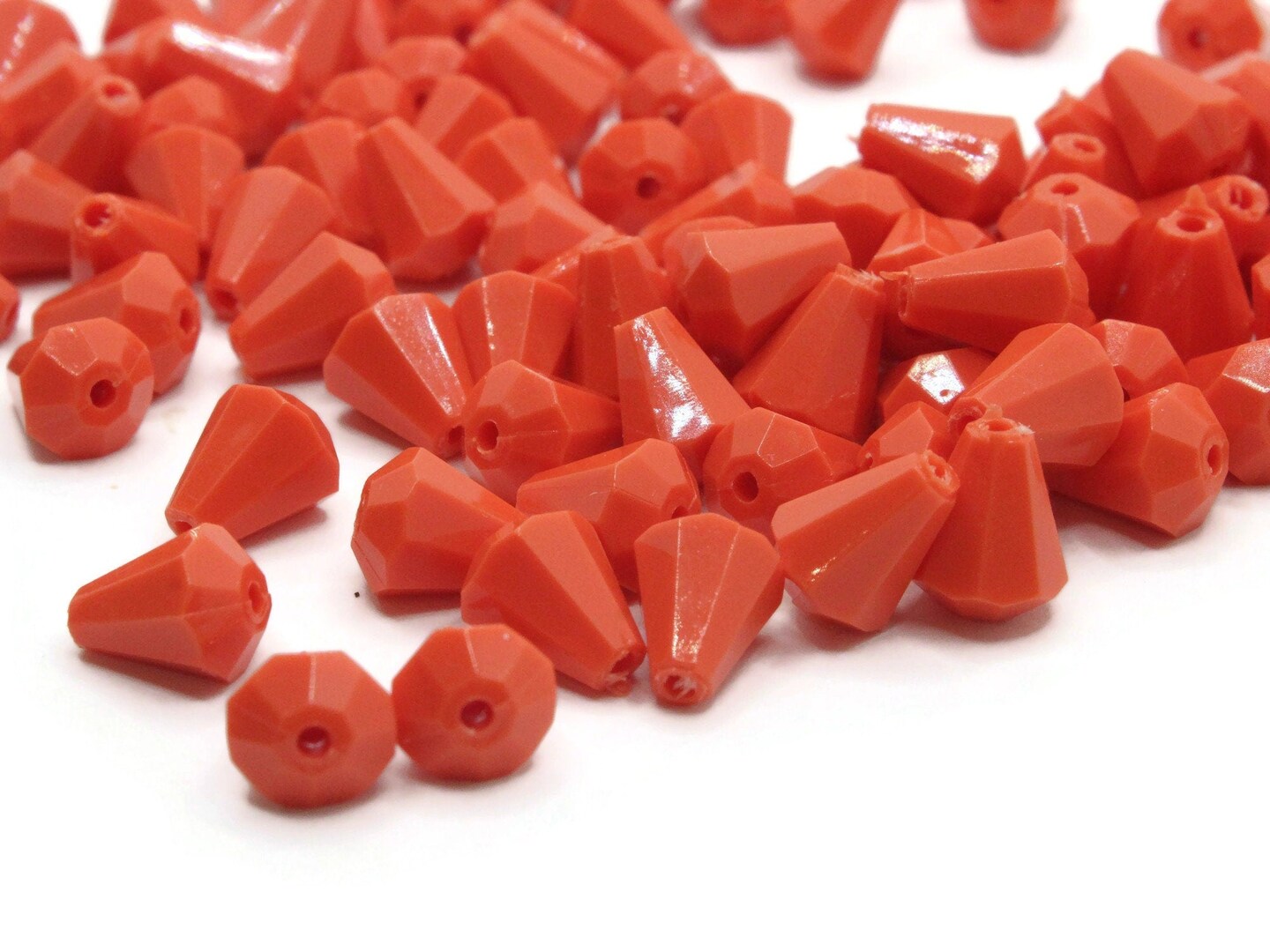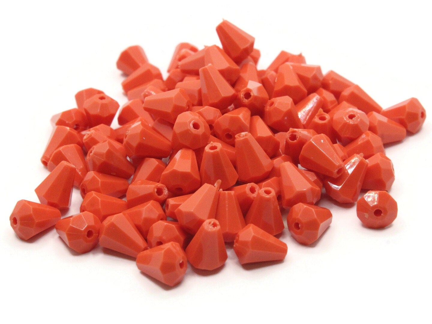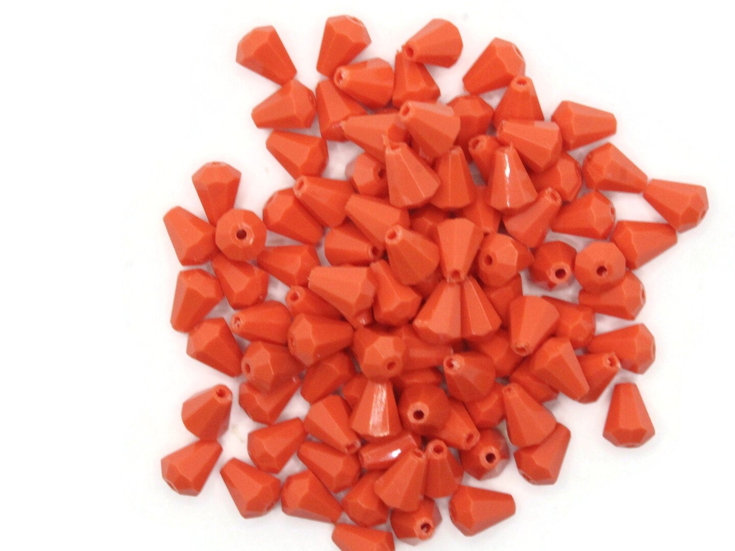 100 9mm Vintage Orange Plastic Teardrop Beads