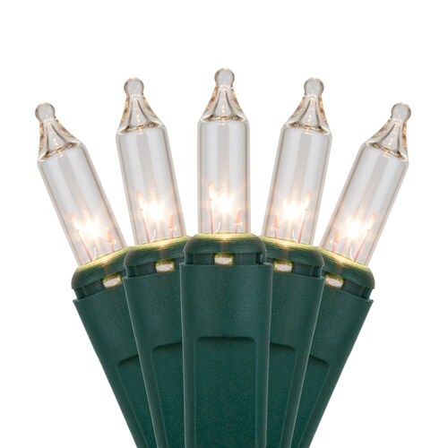 100 Clear Mini Lights, Green Wire, 4" Spacing