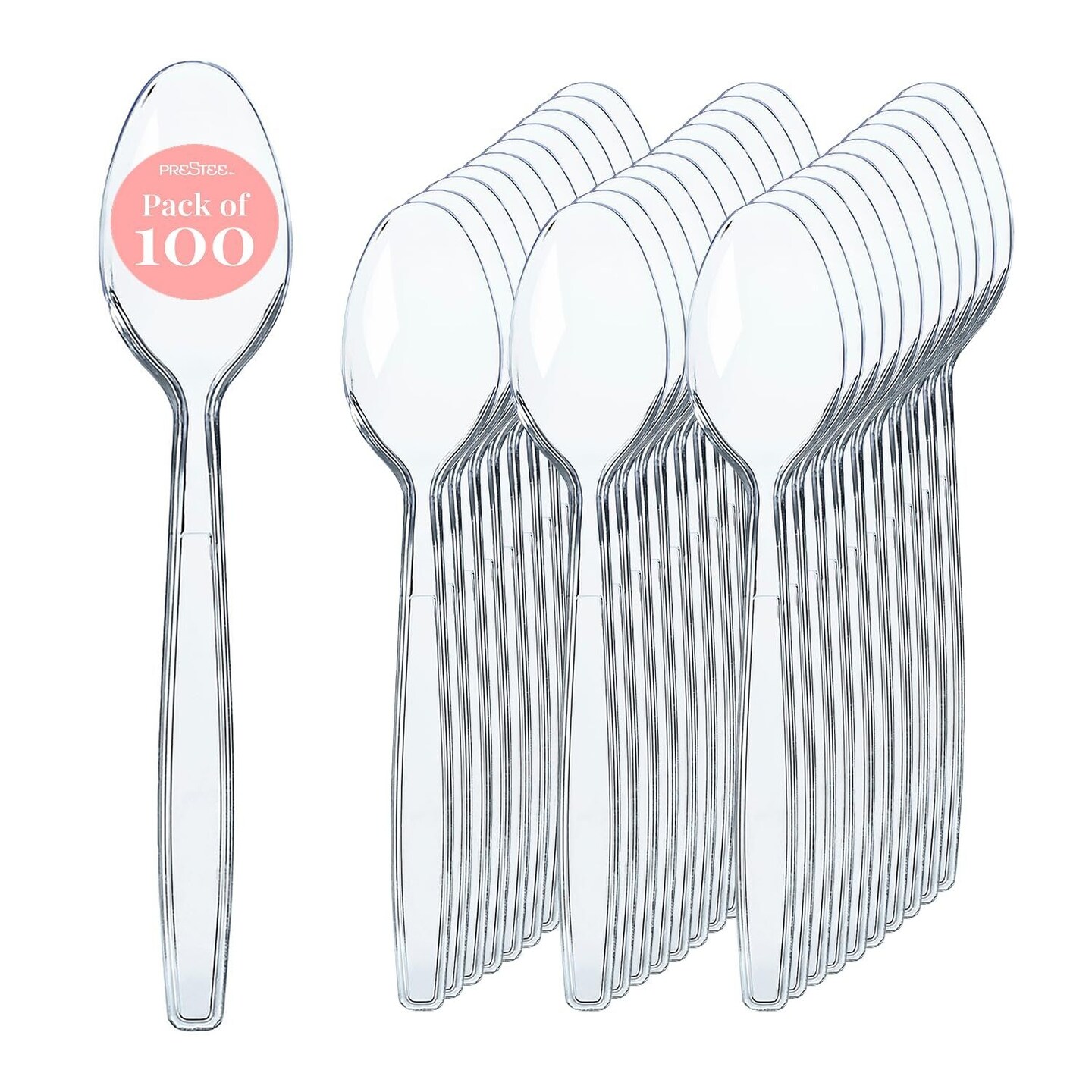100 Clear Plastic Spoons Bulk - Durable Disposable Plastic Silverware Spoons