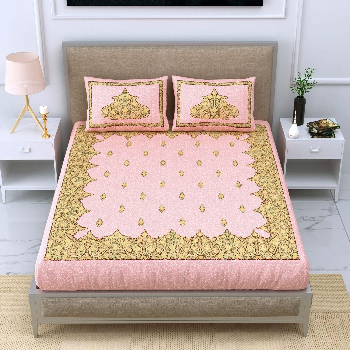 100% Cotton Indian Ethnic 3-piece Fitted Sheet 150 Thread Count Bedsheet with Breathable Pillowcases Deep Pocket Fitted Sheet Premium Soft Bedsheet (king Queen Twin)