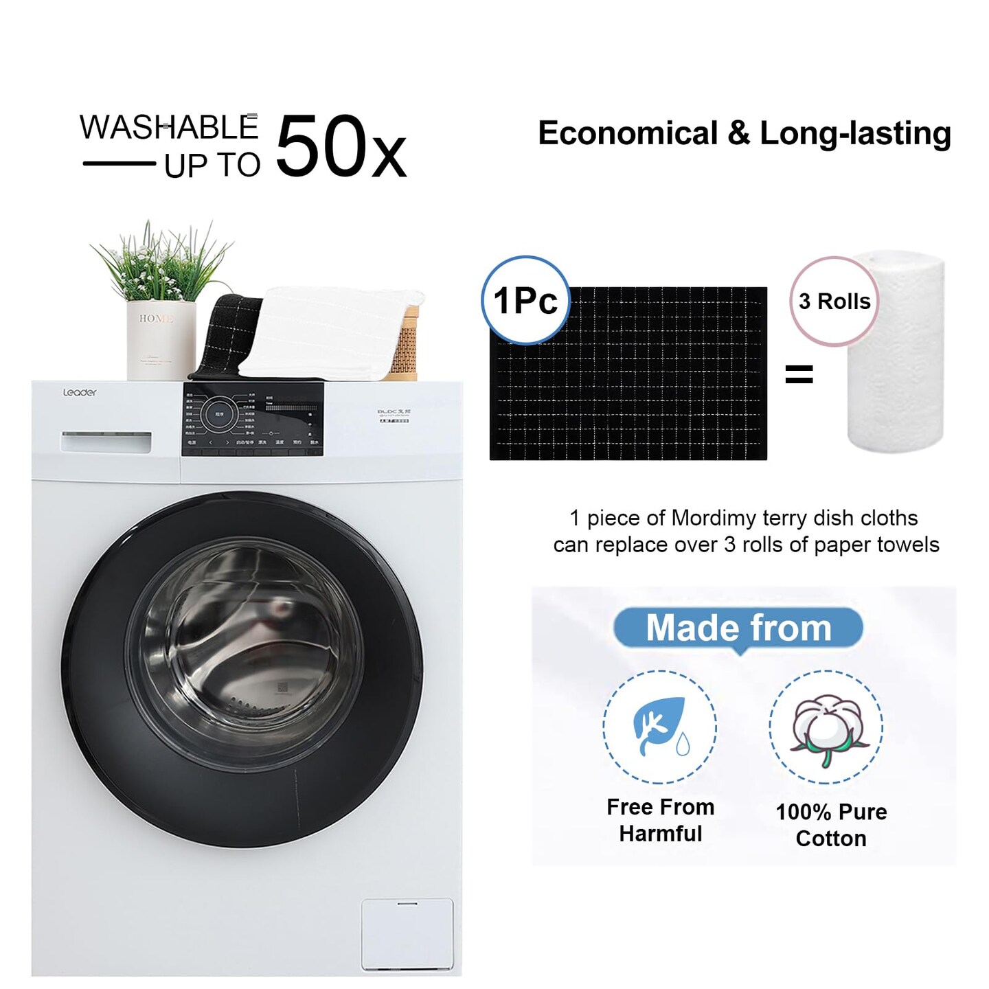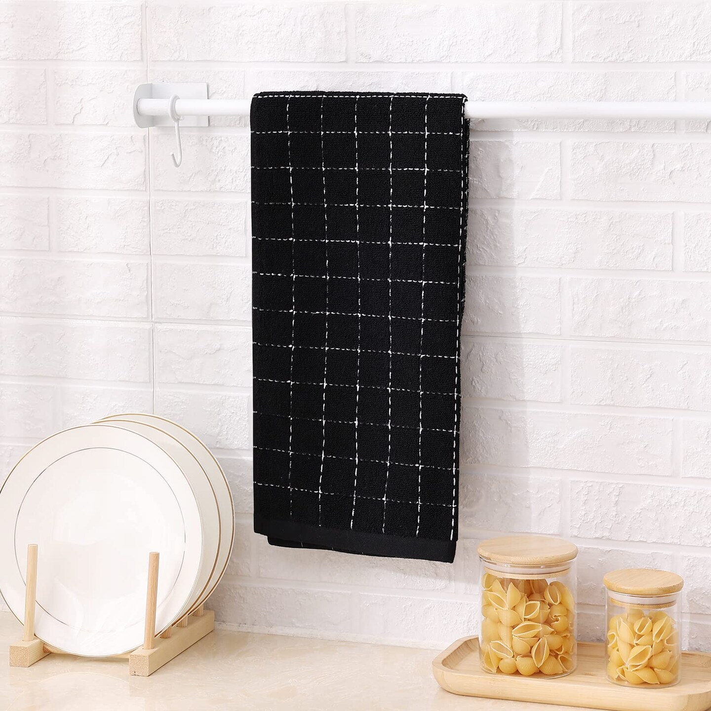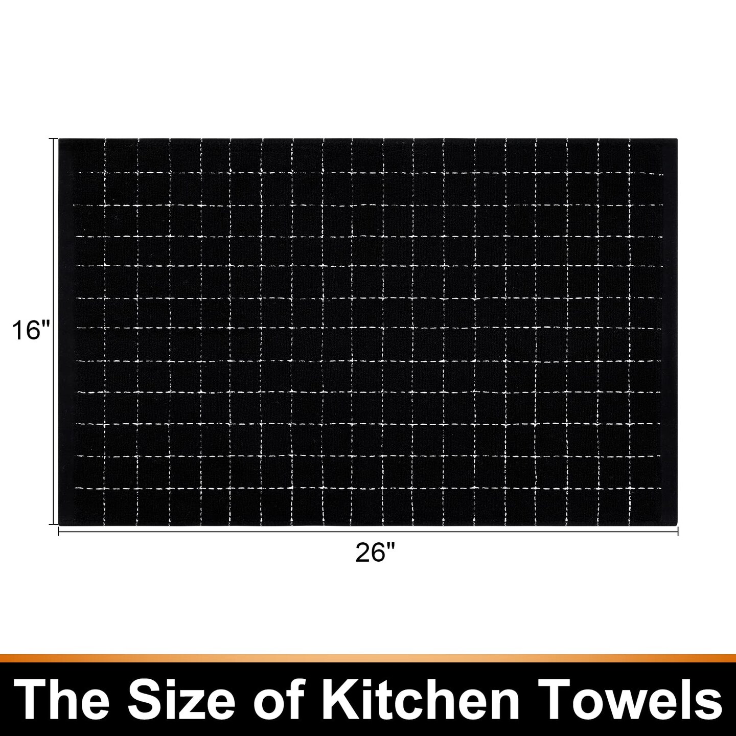 100% Cotton Terry Cloth Kitchen Towels, Super Soft and Absorbent Dish Towels for Drying, Checkered Designed Hand Towels for Kitchen, 16 x 26 Inches, 4 Pack, Black