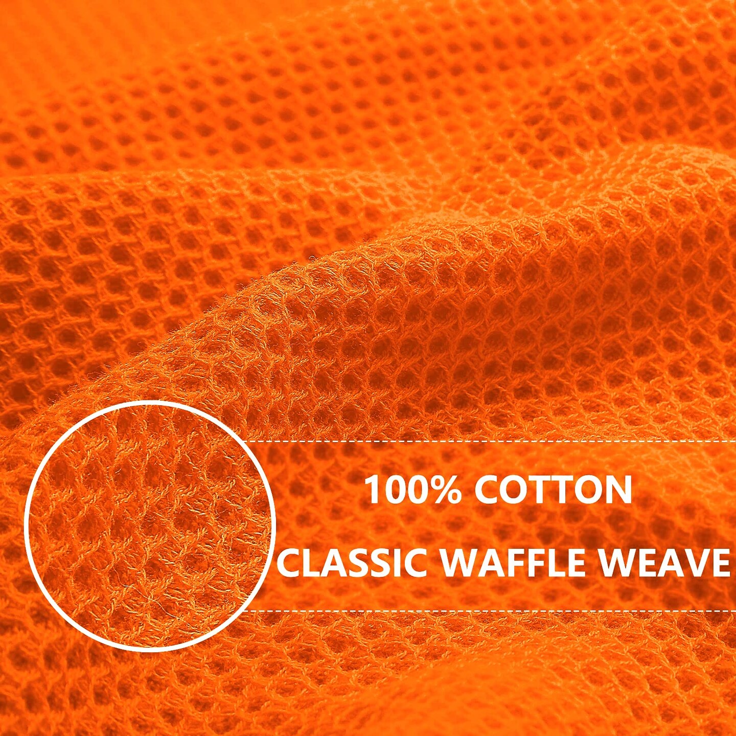 100% Cotton Waffle Weave Kitchen Dish Cloths, Ultra Soft Absorbent Quick Drying Dish Towels, 12 x 12 Inches, 6-Pack, Orange
