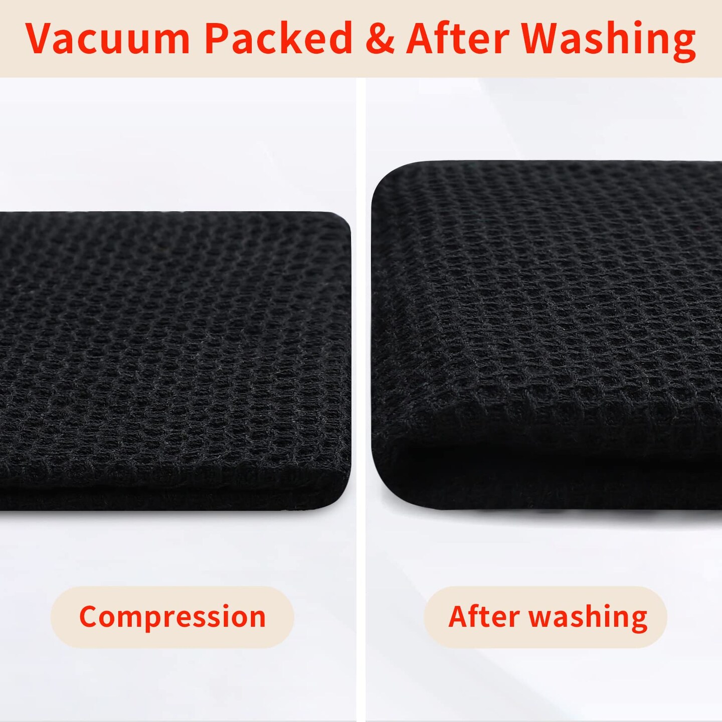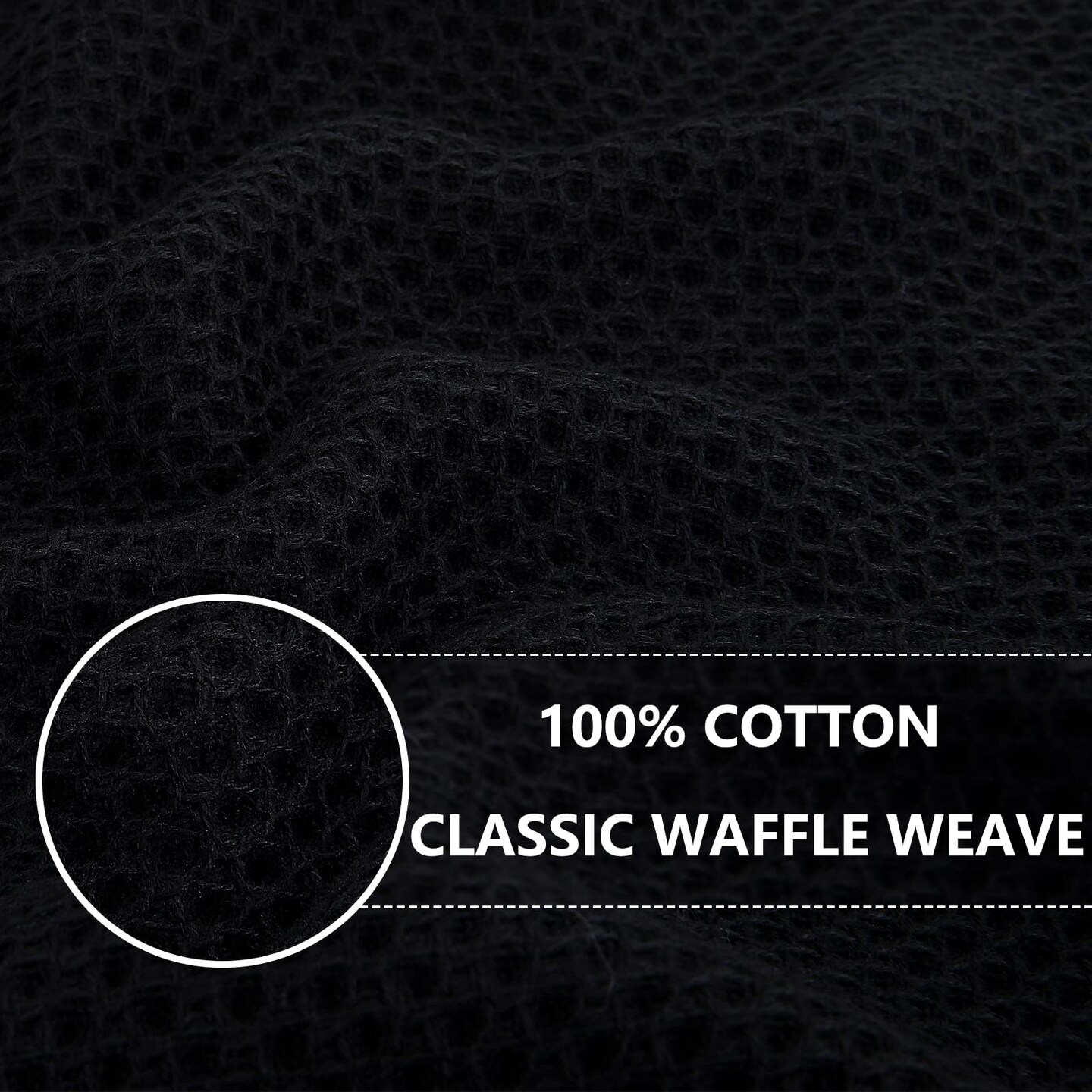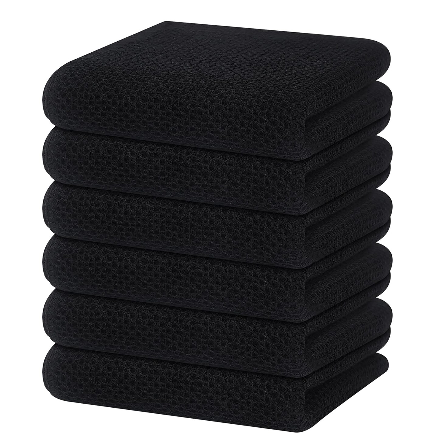 100% Cotton Waffle Weave Kitchen Dish Towels, Ultra Soft Absorbent Quick Drying Cleaning Towel, 13 x 28 Inches, 6-Pack, Black