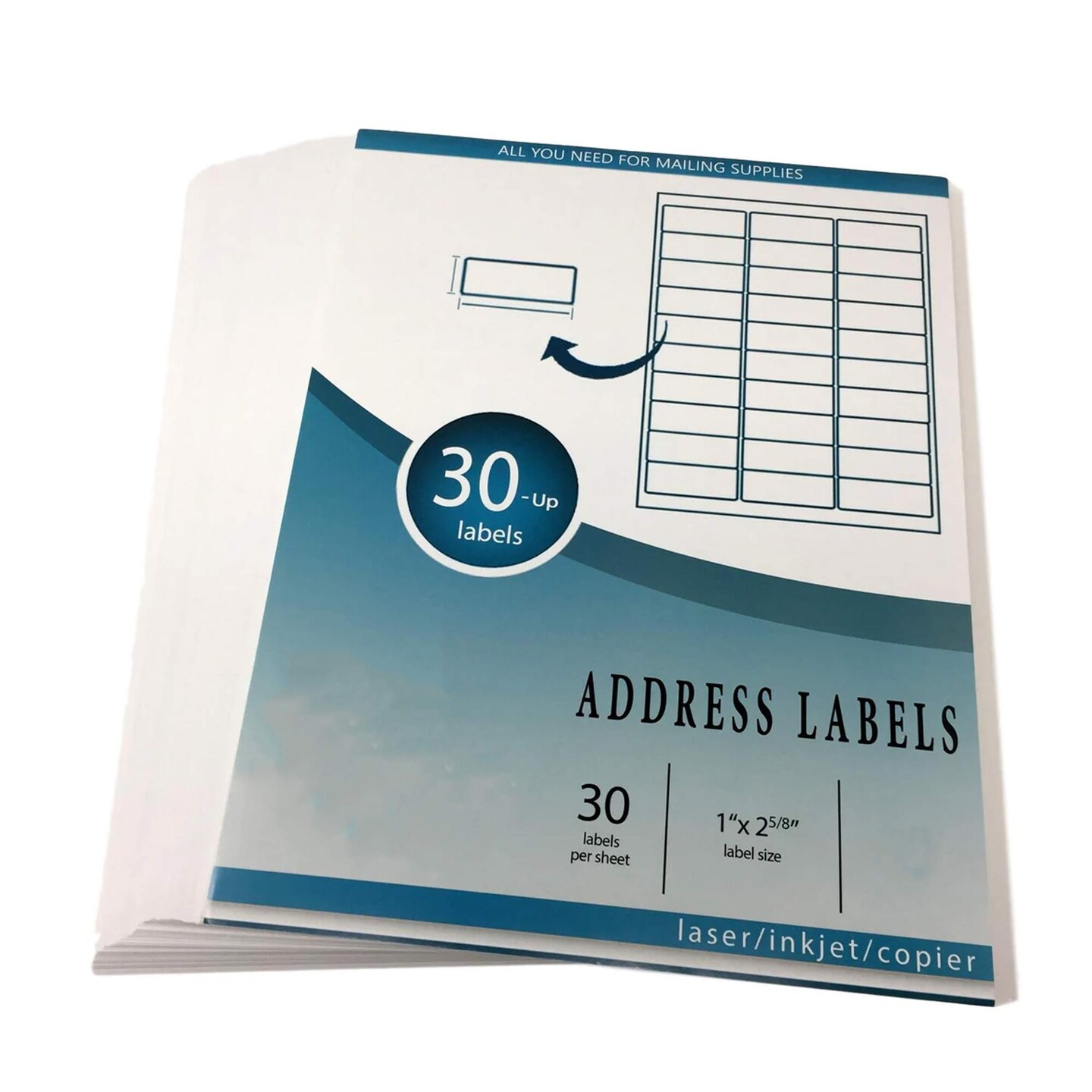100 Count White Self Adhesive Labels 30 Up 1" x 2.625" for Mailing & Shipping