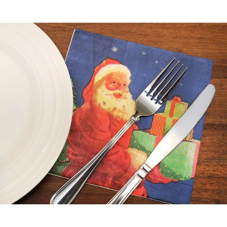 100 ct Christmas Napkins Paper Disposable for Holiday Party 6.5x6.5” Santa Claus