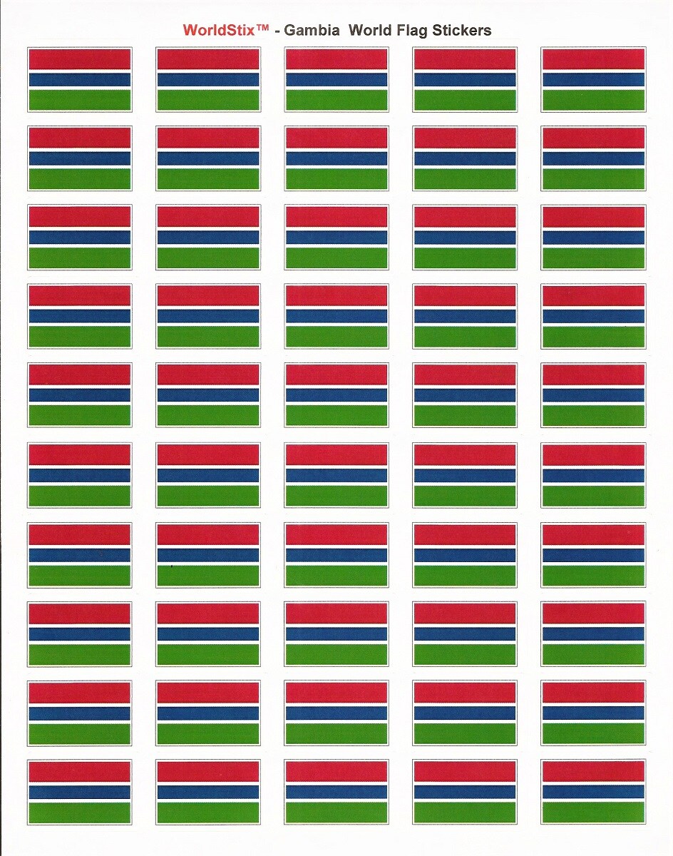 100 Gambia Flag Stickers, Two Sheets of 50, 1.5" x 1" Made in America Self Adhesive Country Flag Scrapbook Stickers, Two Sheets of 50, 100 Sticker Decal Flags