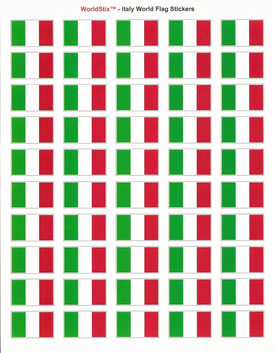 100 Italy Flag Stickers, Two Sheets of 50, 1.5" x 1" Made in America Self Adhesive Country Flag Scrapbook Stickers, Two Sheets of 50, 100 Sticker Decal Flags
