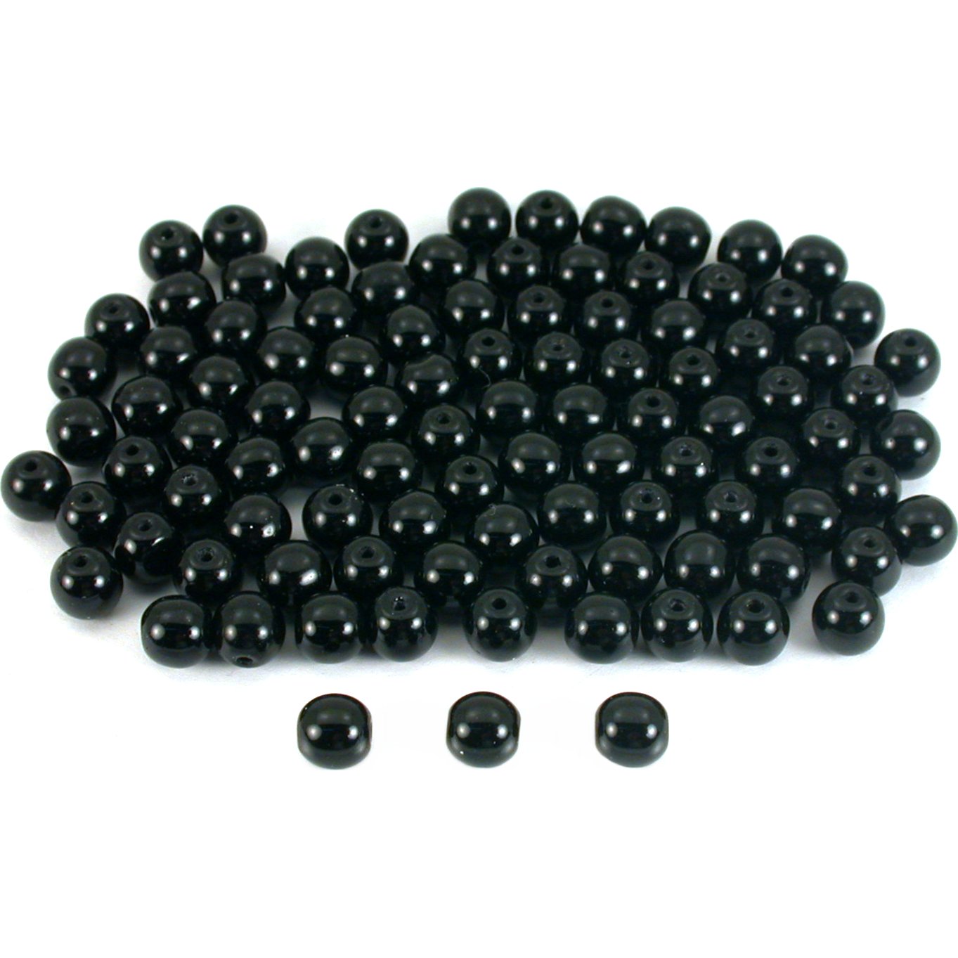 100 Jet Black Round Druk Czech Glass Beads Beading 6mm