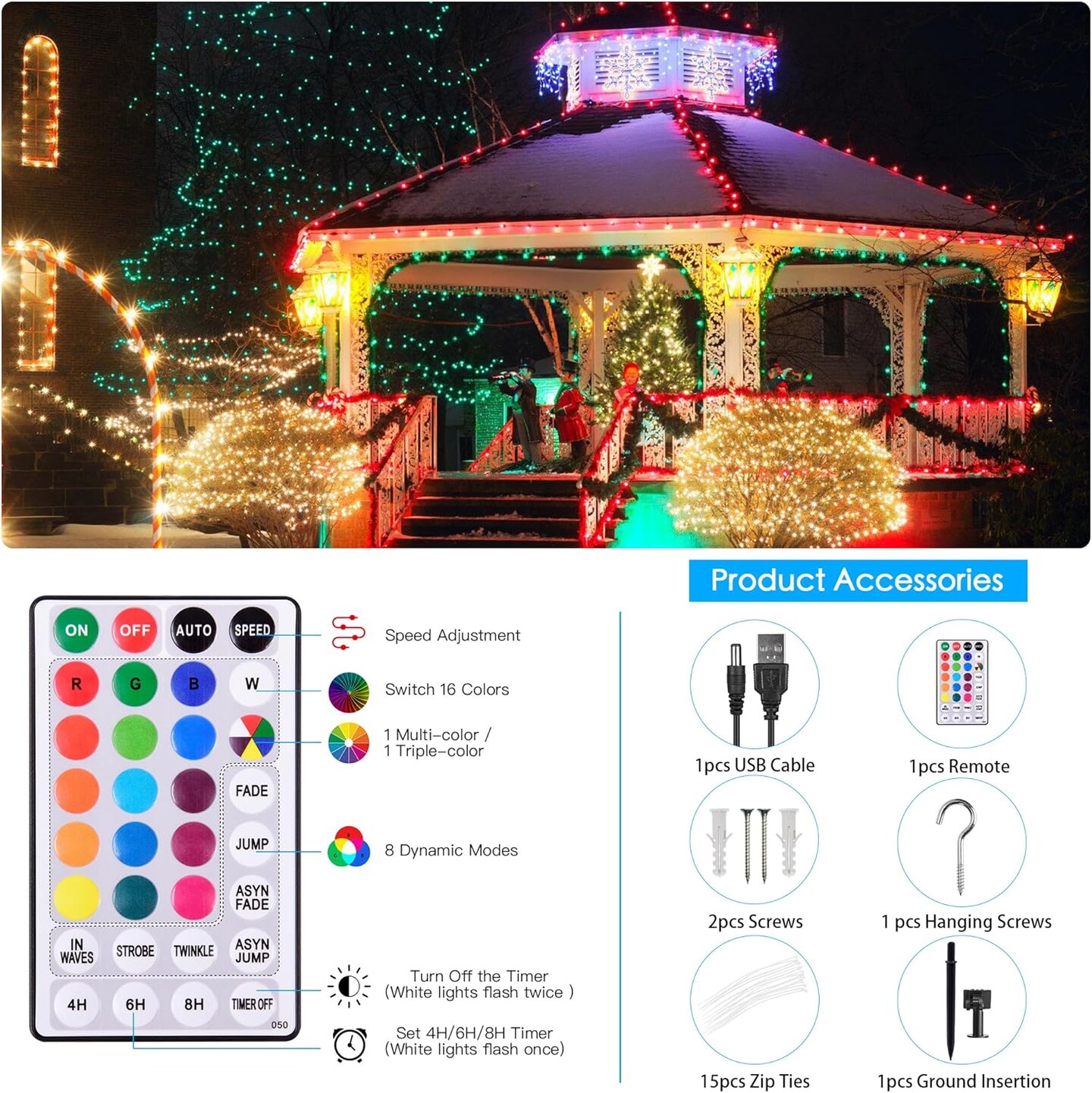 100 LED Christmas Solar String Lights - 18 Changing Colors 40FT