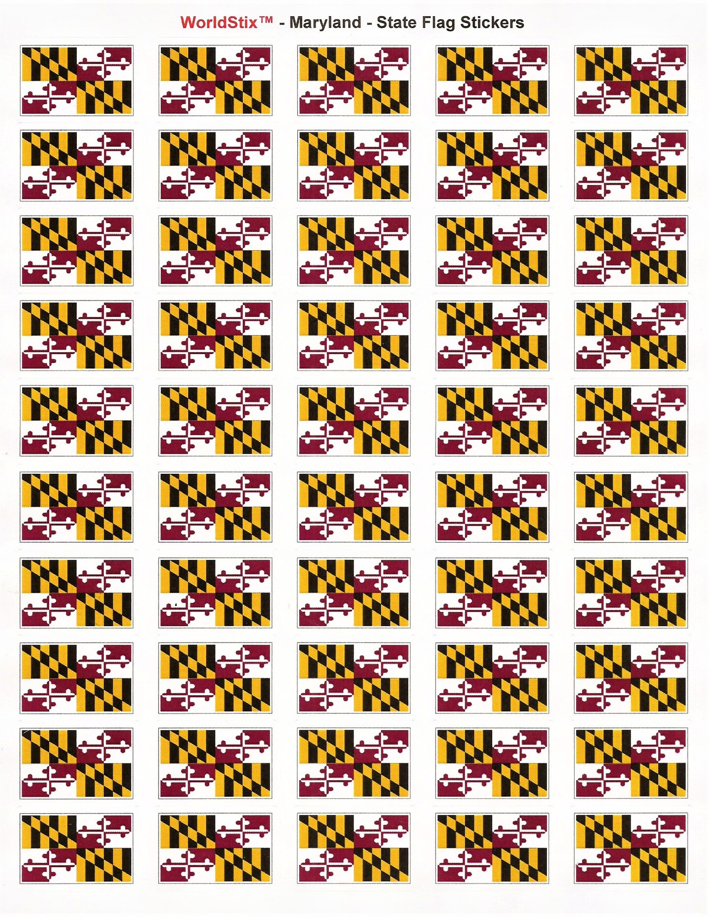 100 Maryland Flag Stickers; 1.5" x 1" Self Adhesive State Flag Scrapbook Stickers, Two Sheets of 50, 100 Sticker Decal Flags