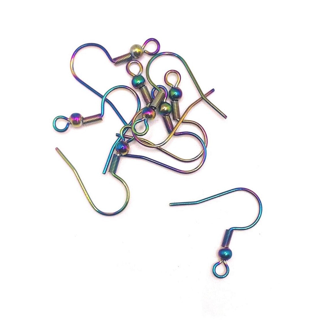 100 or 500 Pieces: 201 Stainless Steel Rainbow Fish Hook Earring Wires with Spring and Ball