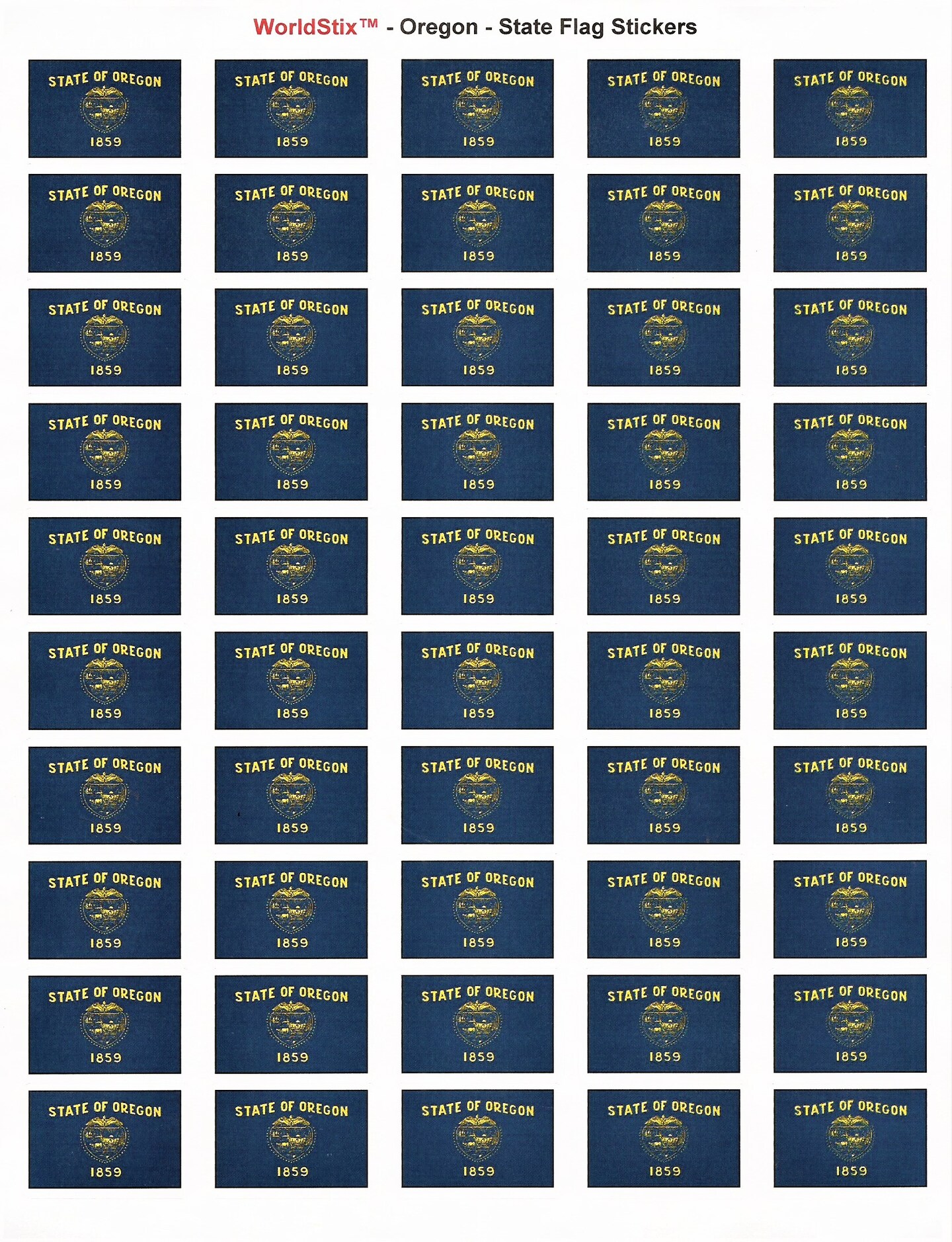 100 Oregon Flag Stickers; 1.5" x 1" Made in America Self Adhesive State Flag Scrapbook Stickers, Two Sheets of 50, 100 Sticker Decal Flags