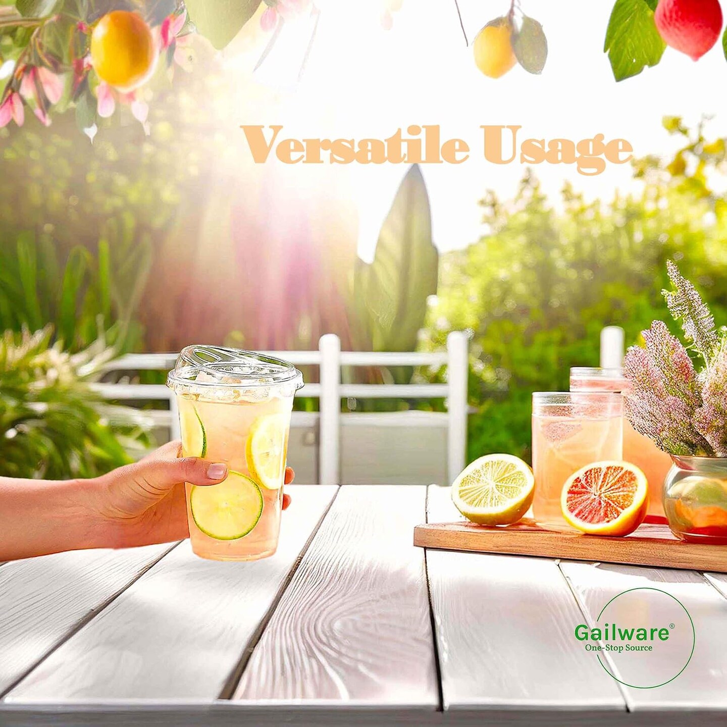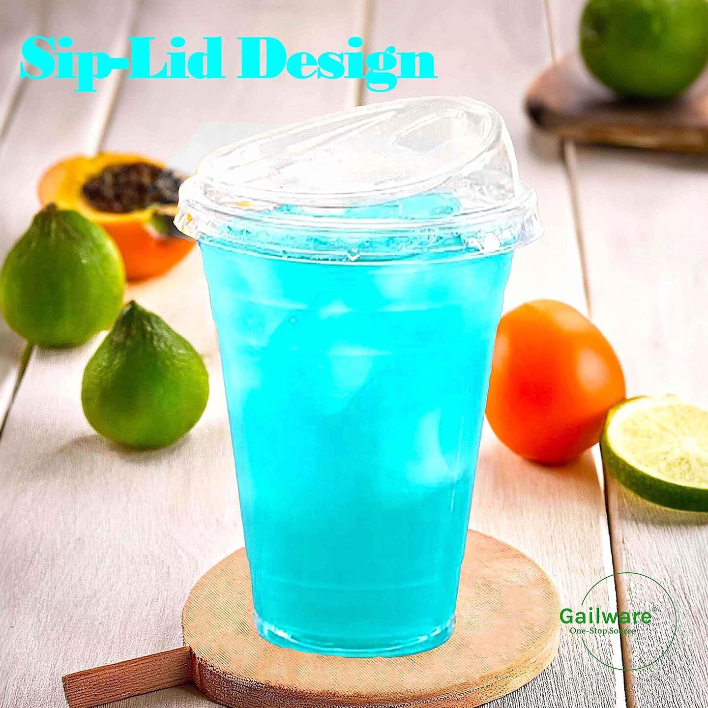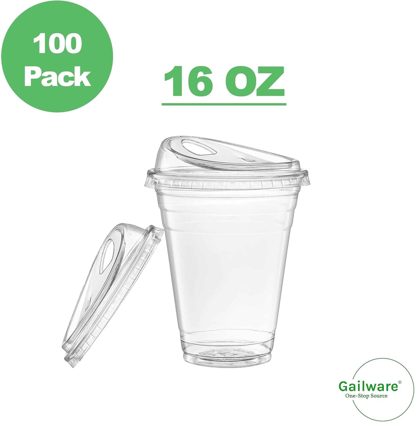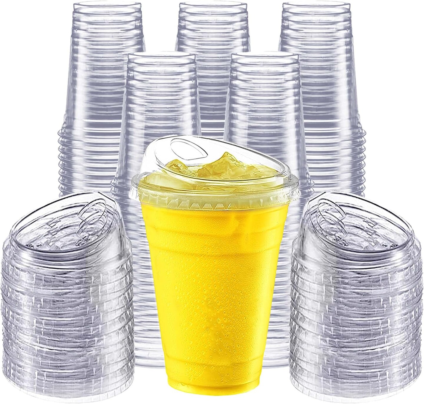 100 Pack 16 oz Clear Plastic Cups with Strawless Sip-Lids, Disposable Cold Drinking Cups with Lids, To Go Plastic Container