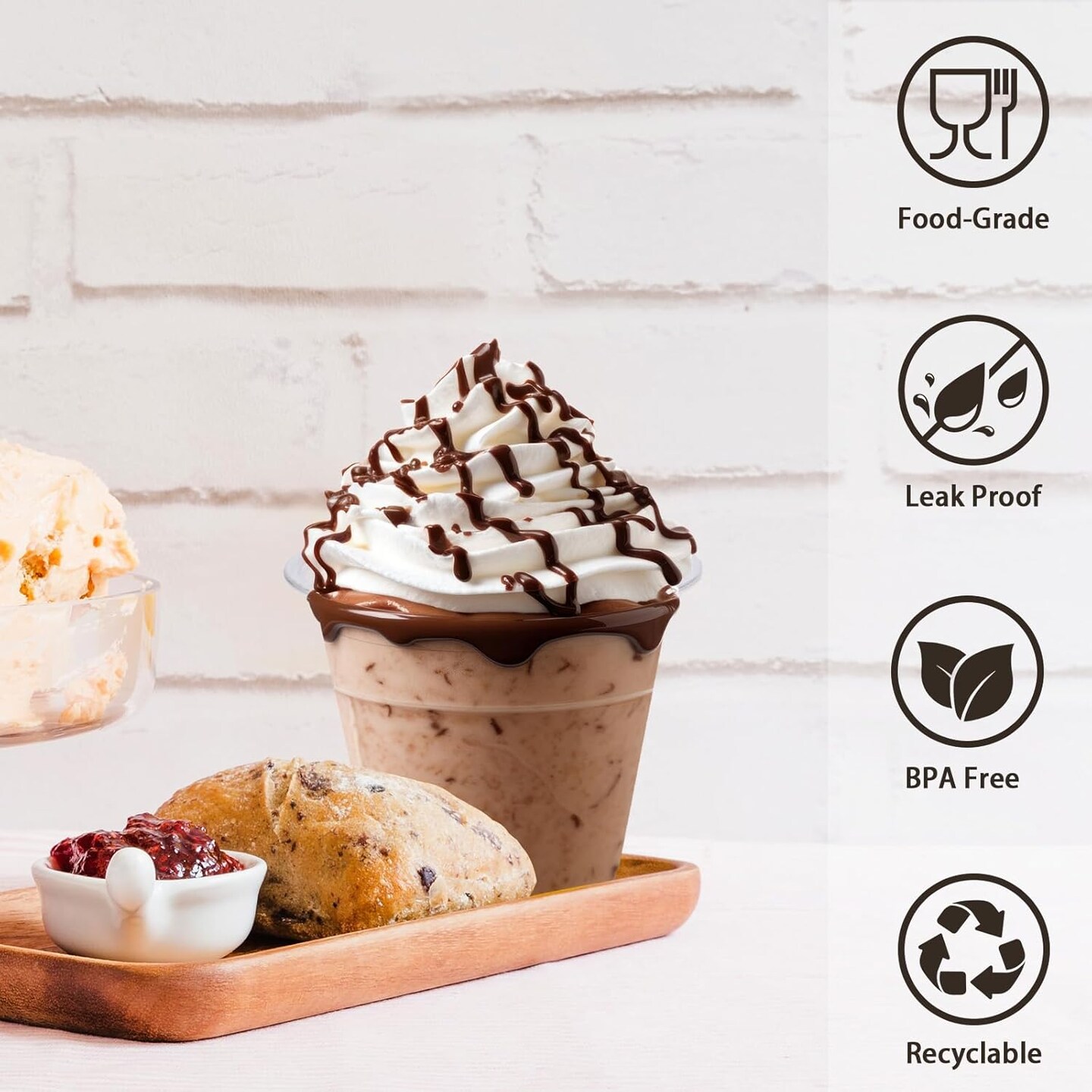 100 Pack 9 oz Clear Plastic Cups with Lids, Disposable Dessert Cup, Fruit Cup, Clear PET Cups for Cake, Cold Drink, Ice Cream, Salad