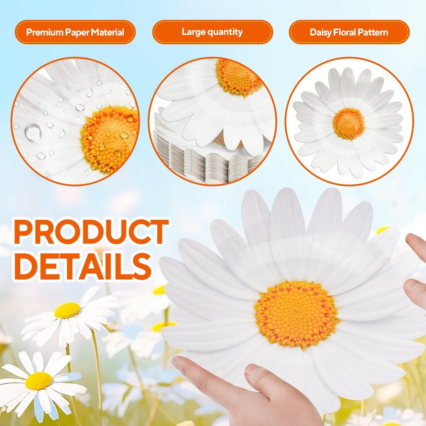 100 Pack Daisy Floral Paper Plates Flower Disposable Dinner Plates 9.5 Inch Summer Tableware