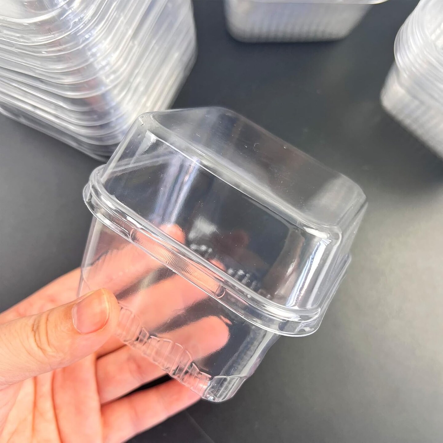 100 Pack Disposable Clear Plastic Cups Ice-cream Cups with Lids and Sporks, 8 oz Square PET Sundae Dessert Cups for Iced Coffee Cold Drinks Frozen Yogut Fruits Snacks Bubble Boba Juice Milkshake