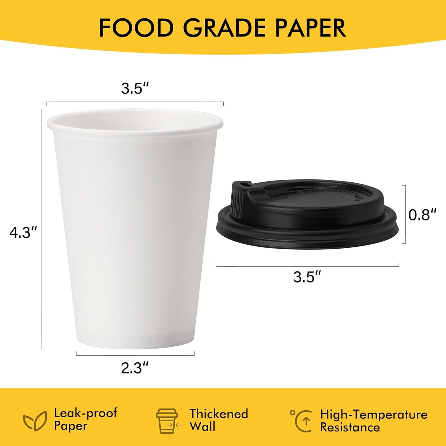 [100 pack] Disposable Coffee Cups with Lids 12 oz, Hot Paper Cups with Lids, To Go Cup with Lid