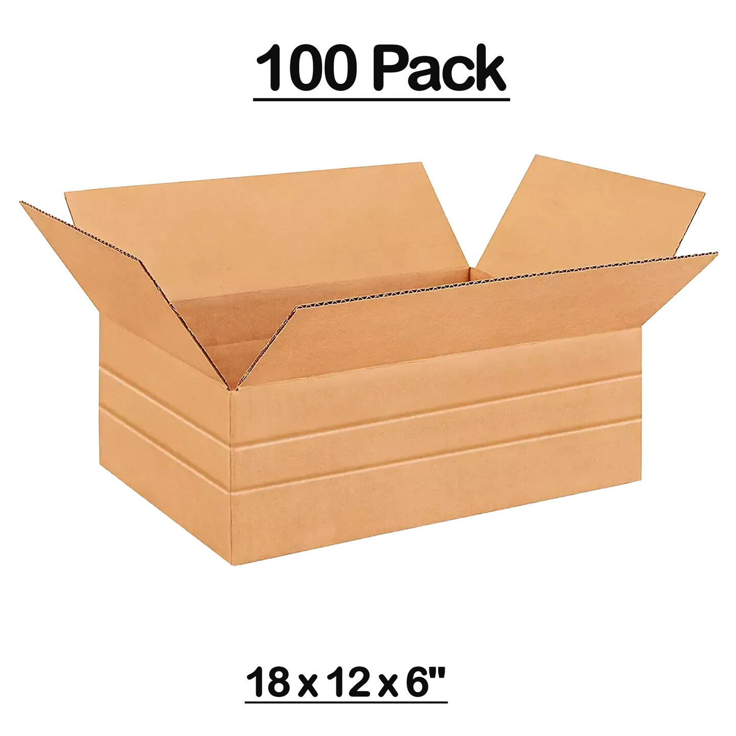 100 Pack Heavy Duty Multi Depth Corrugated Cartons for Shipping and Storage 18 x 12 x 6 inch
