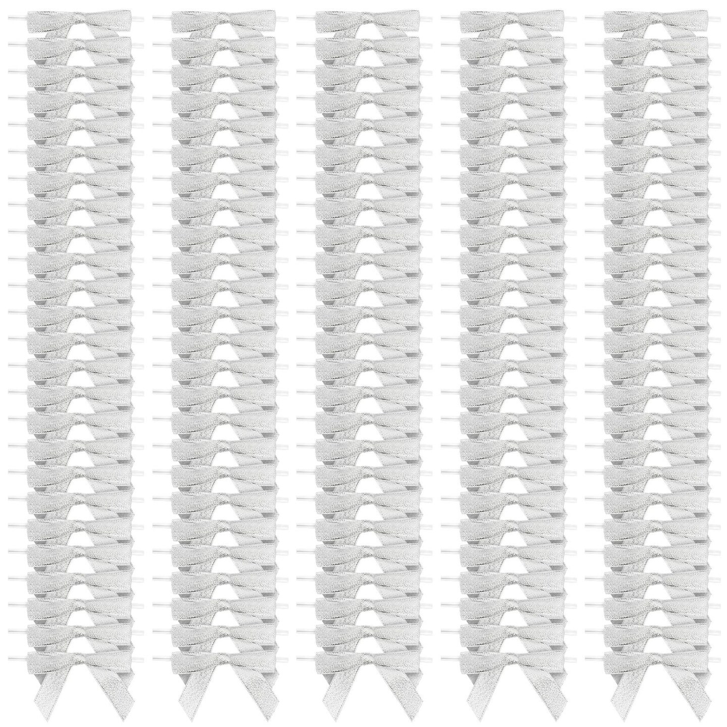 100 Pack Silver Twist Tie Bows for Treat Bags, 3" Small Satin Ribbons for Craft Decoration, Gift Wrap, Themed Party Favors, Baked Goods