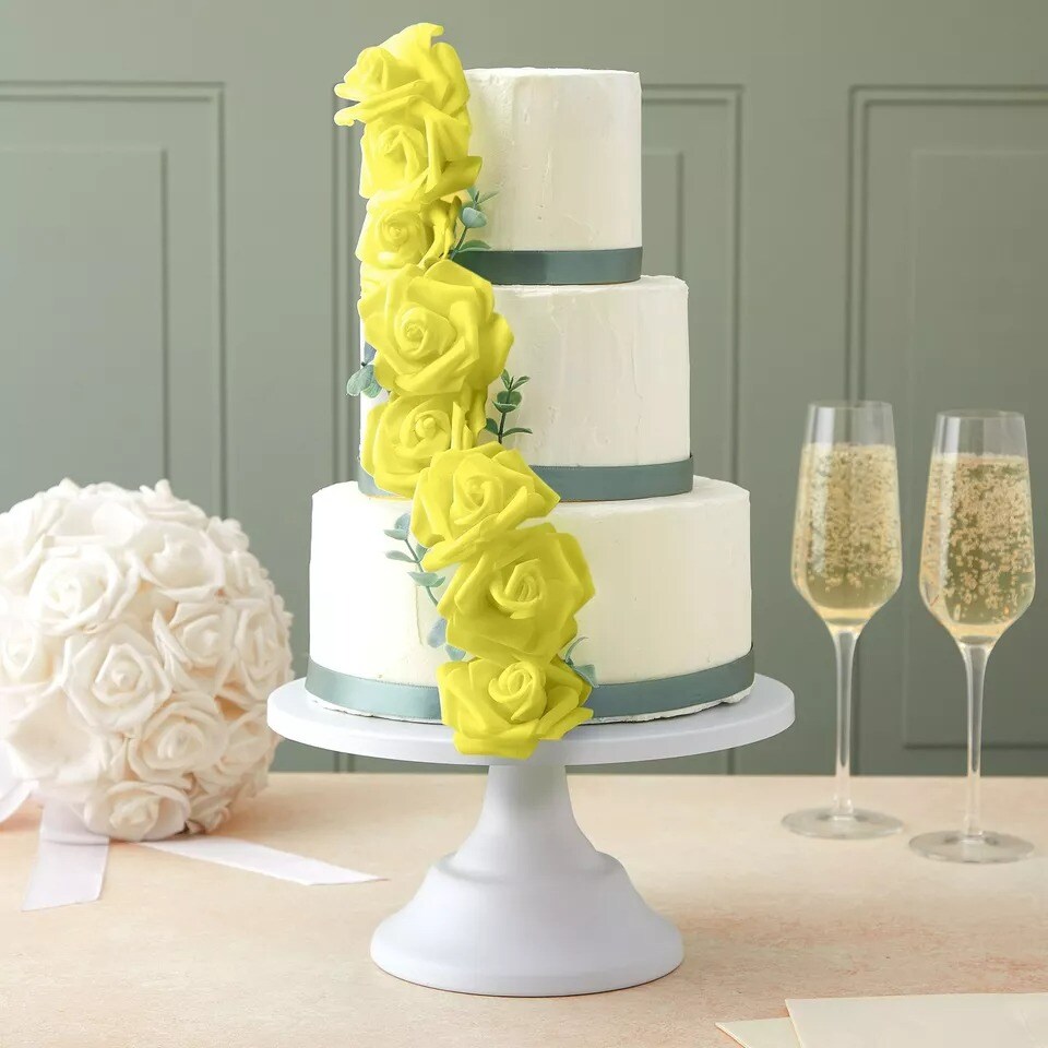 100 Pack Yellow Artificial Flowers, Bulk Stemless Fake Foam Roses, 3 in