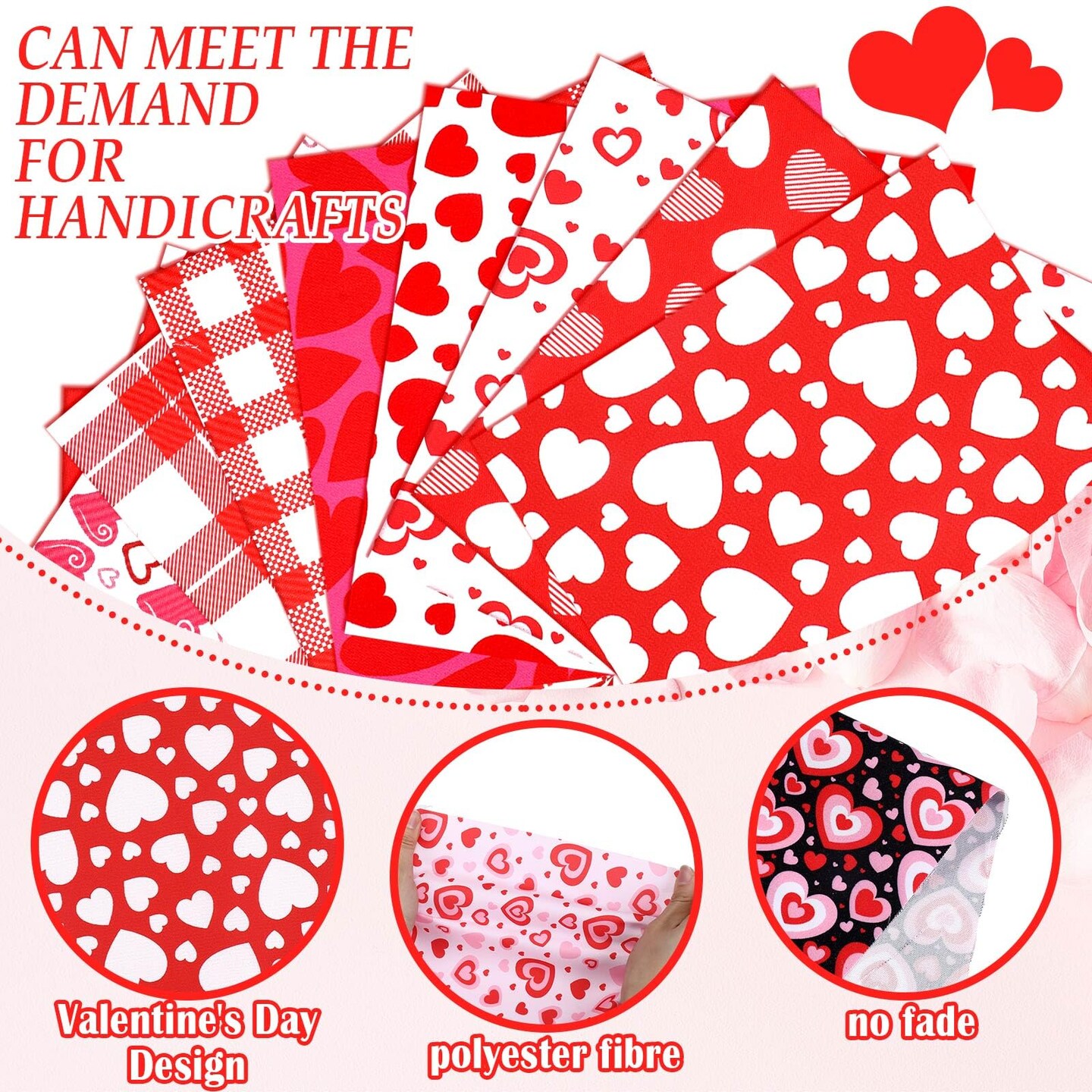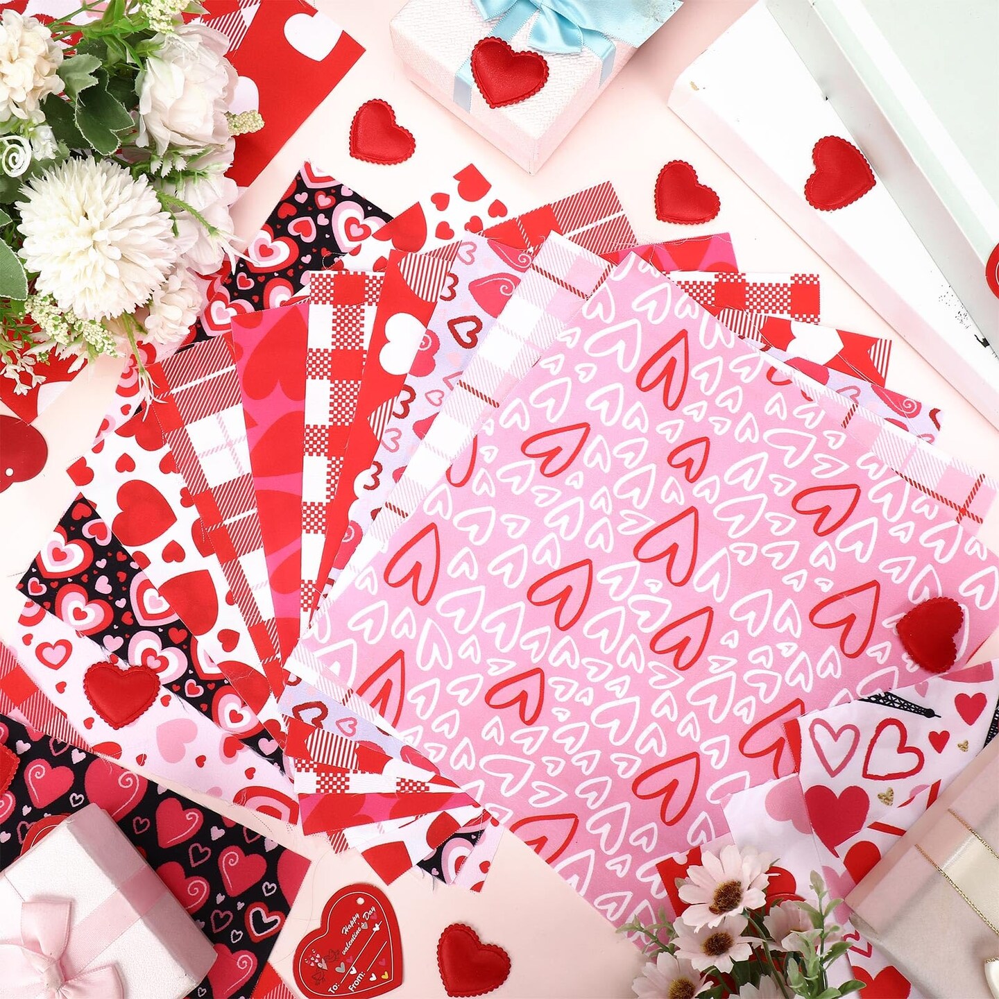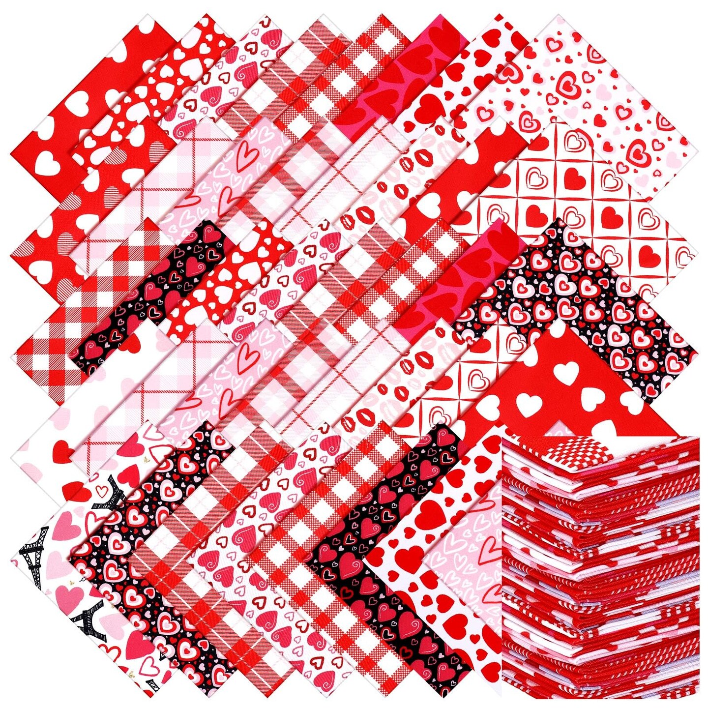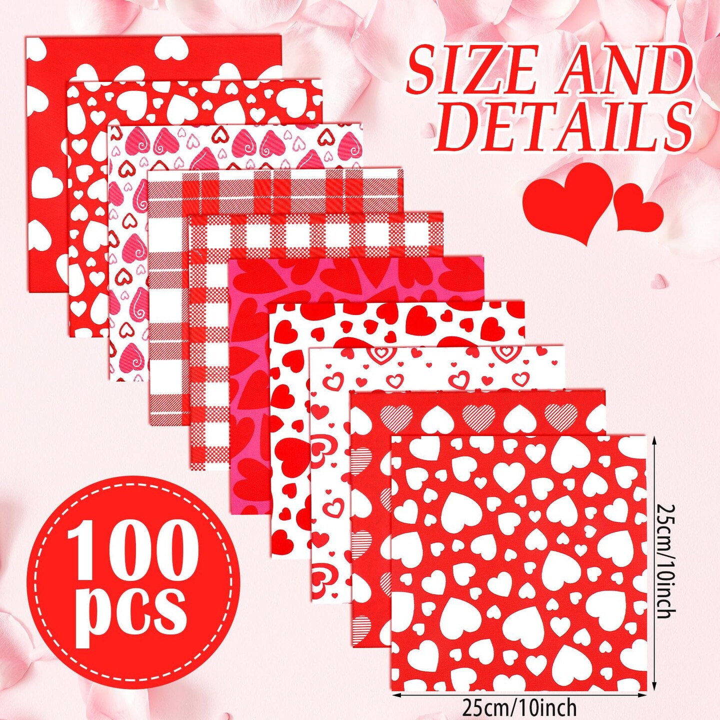 100 Pcs 10 x 10 Inch Valentine‘s Day Fabric Bundles Rose Red Pink Heart Love Printed Fat Quarters Quilting Patchwork Squares Sewing Fabrics for DIY Handmade Crafting Home Party Decor