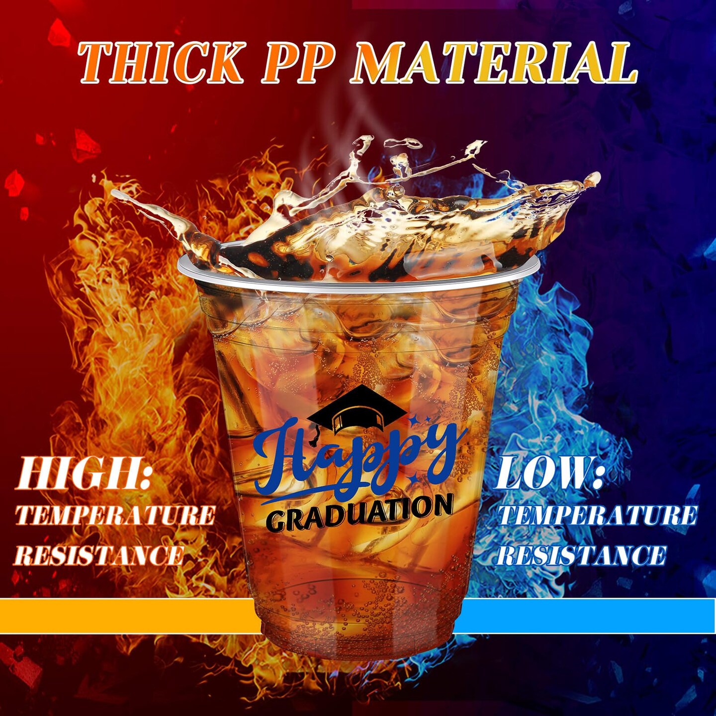 100 Pcs 12oz Graduation Cups 2026 Disposable Plastic Cups for Class of 2026 Graduation Party Congrats Grad Elegant Party Supplies Tableware Decorations (Blue)