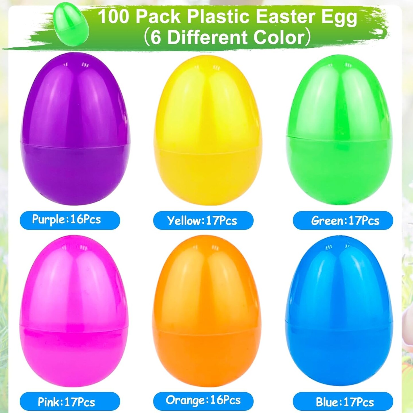 100 Pcs 3.1 Inch Large Plastic Easter Eggs Bulk 6 Colors Empty Easter Eggs Fillable, Easter Basket Stuffers Fillers