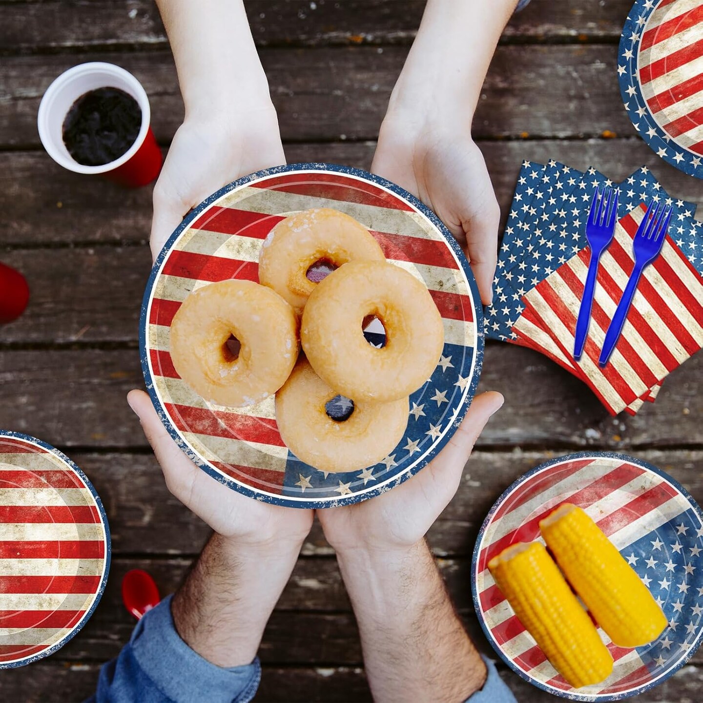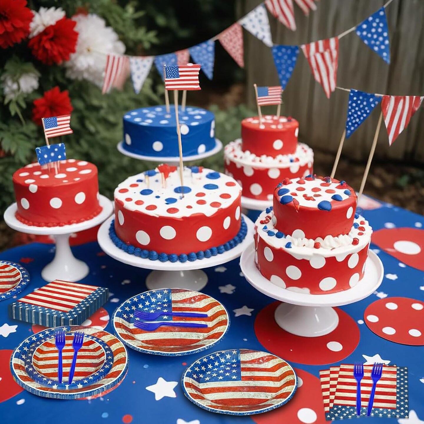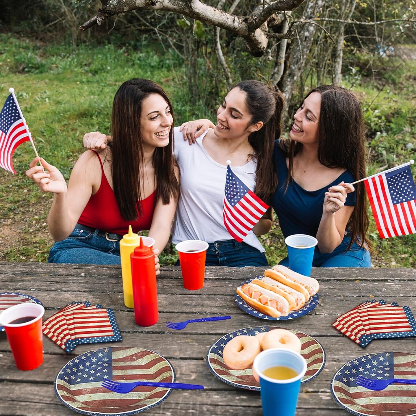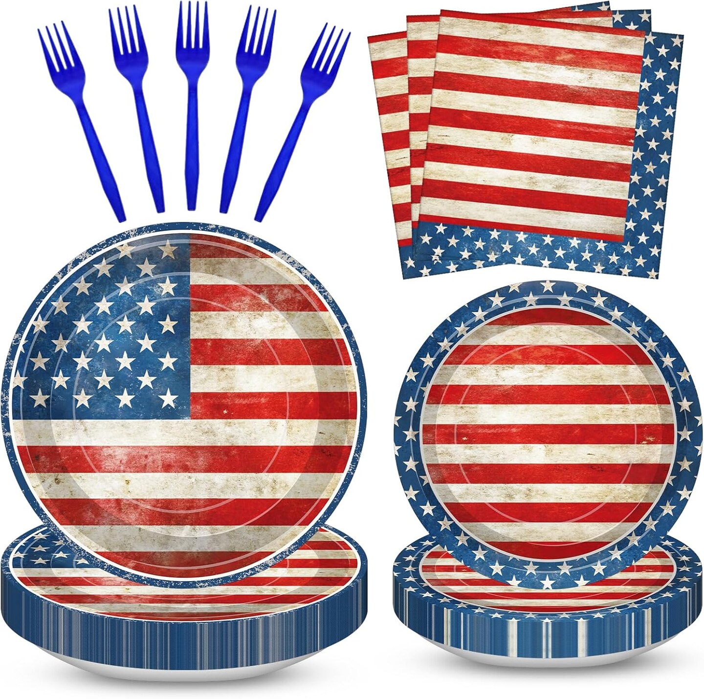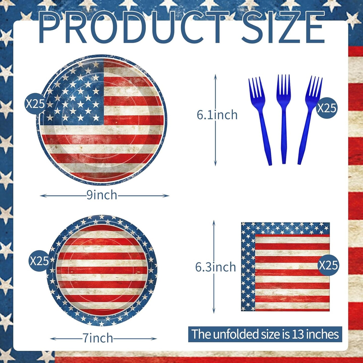 100 Pcs American Flag Party Supplies Set, Serves 25 – Disposable Patriotic Paper Plates, Napkins, and Forks, USA Flag-Themed Tableware for 4th of July, Memorial Day, Veterans Day, Independence Day BBQ