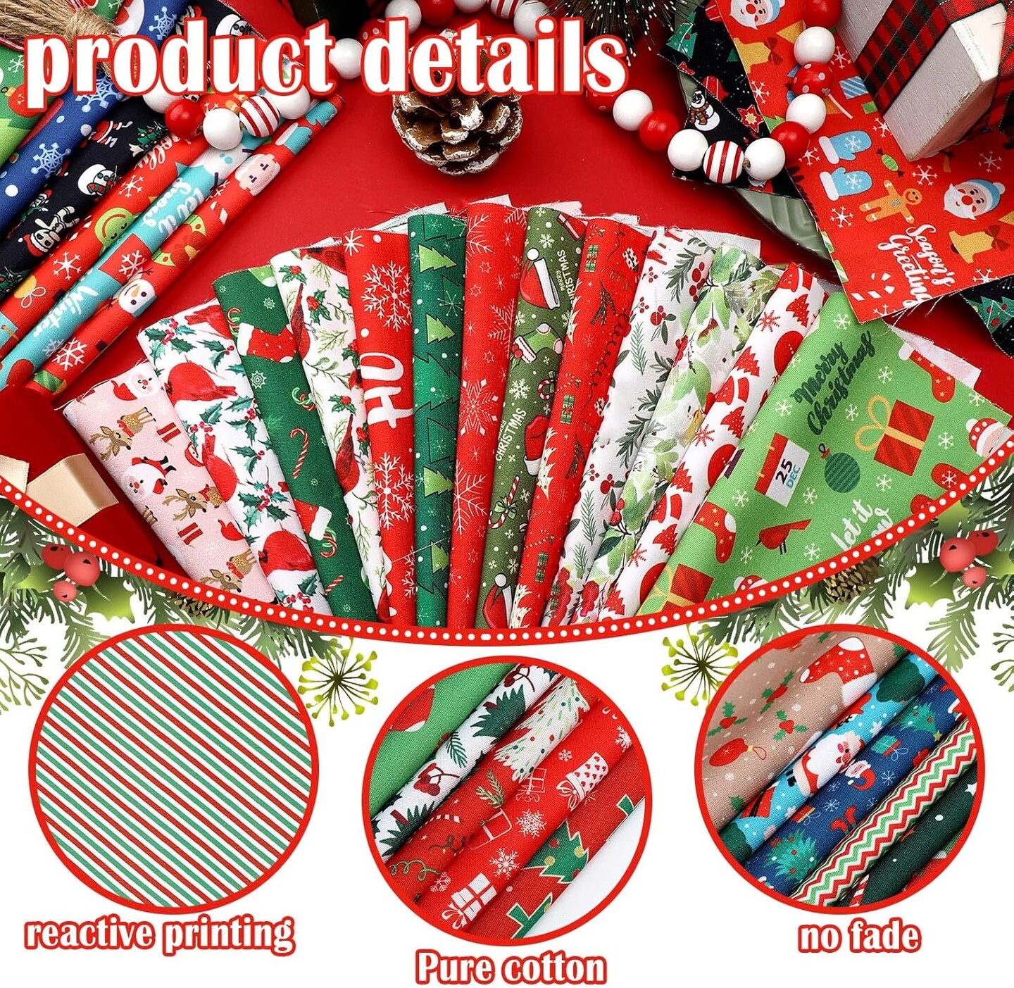 100 Pcs Christmas Fabric Bundles - 8 x 8 Inches
