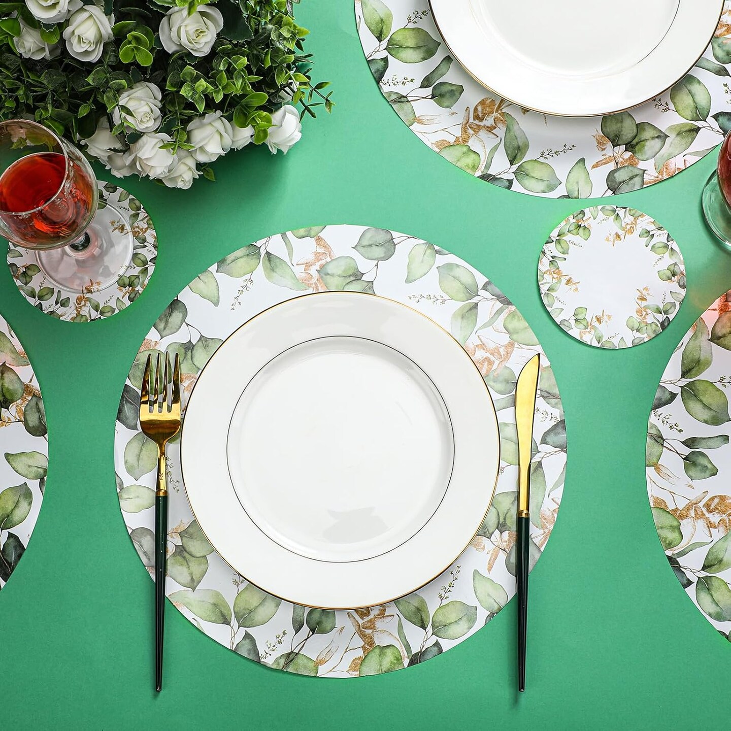 100 Pcs Eucalyptus Leaves Disposable Paper Place Mat Coaster Set Green Round Table Place Mat Paper