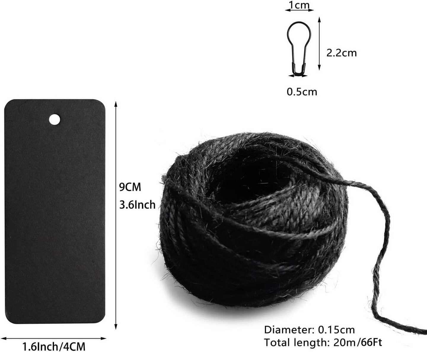 100 pcs Gift Tags with String, Black Christmas Stocking Tags Blank Marking Tags with Safety Pins,Name Tags for Gift Bags Label Clothes Arts and Crafts (Black)