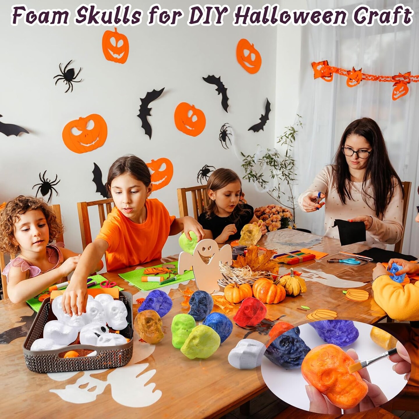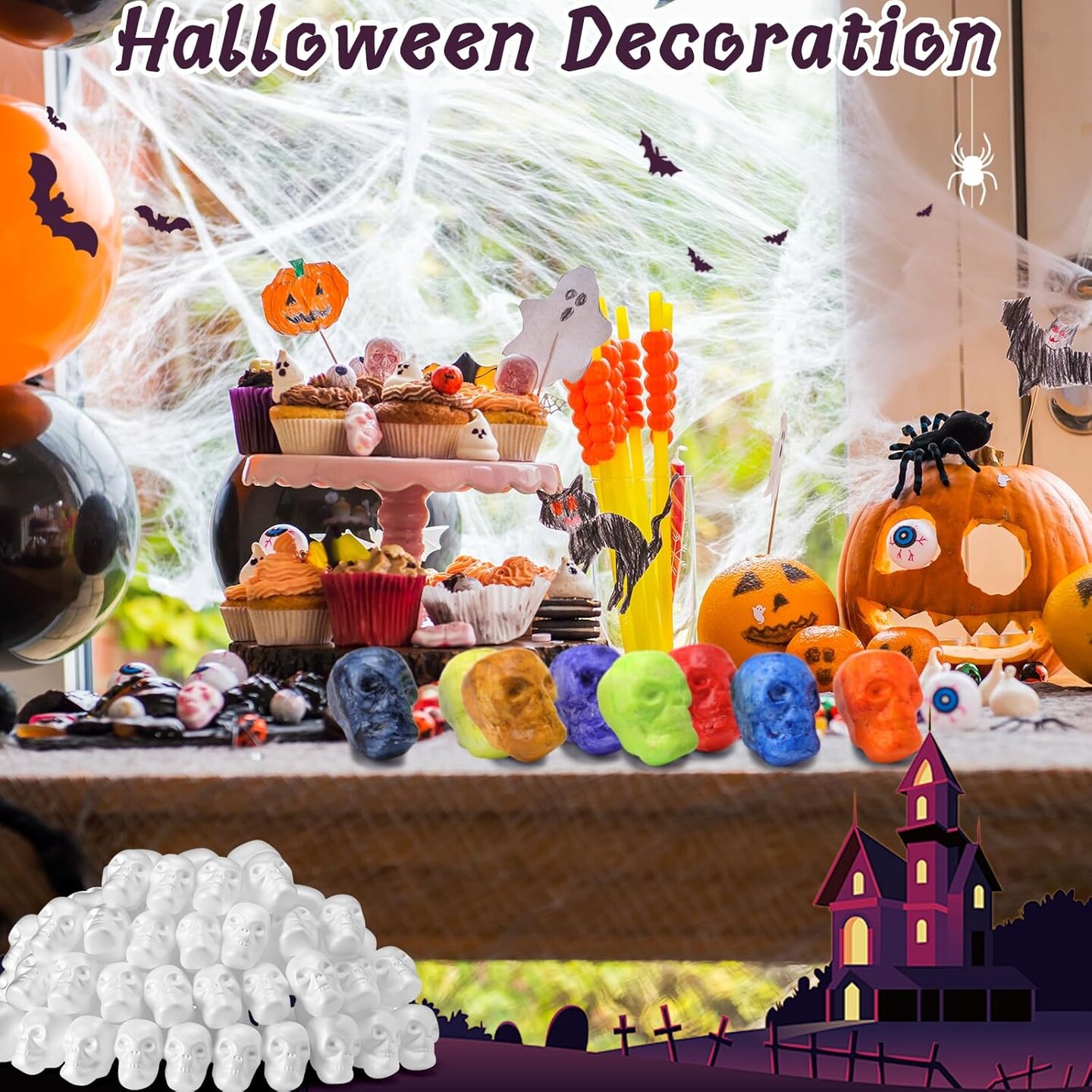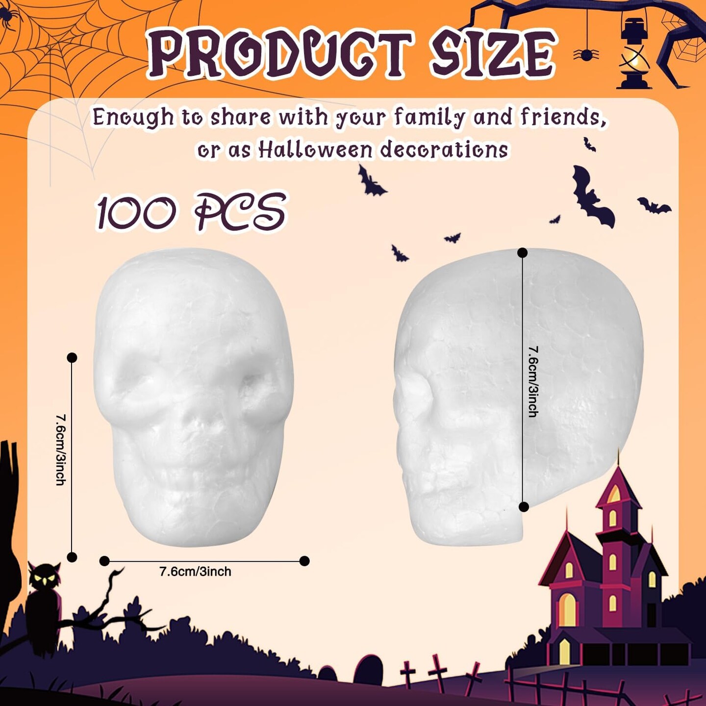 100 Pcs Halloween Foam Skulls White Halloween Skull Foam Skeleton Craft 3 x 2.4 x 1.8 Inches Balls Skeleton Head for DIY Wall Home Project Decorations