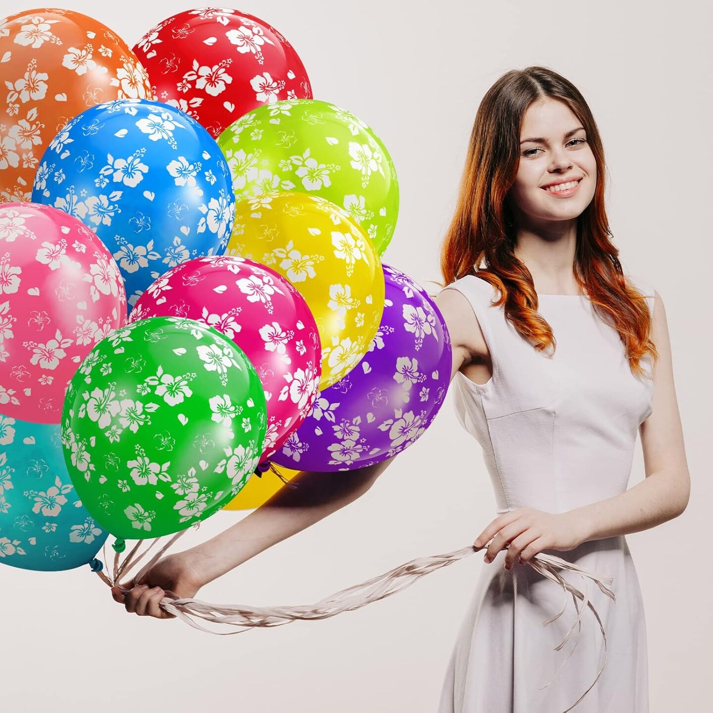 100 Pcs Hawaiian Luau Party Balloons Bulk 12 Inch (Blue,green,orange,pink,purple,red,rose Red)