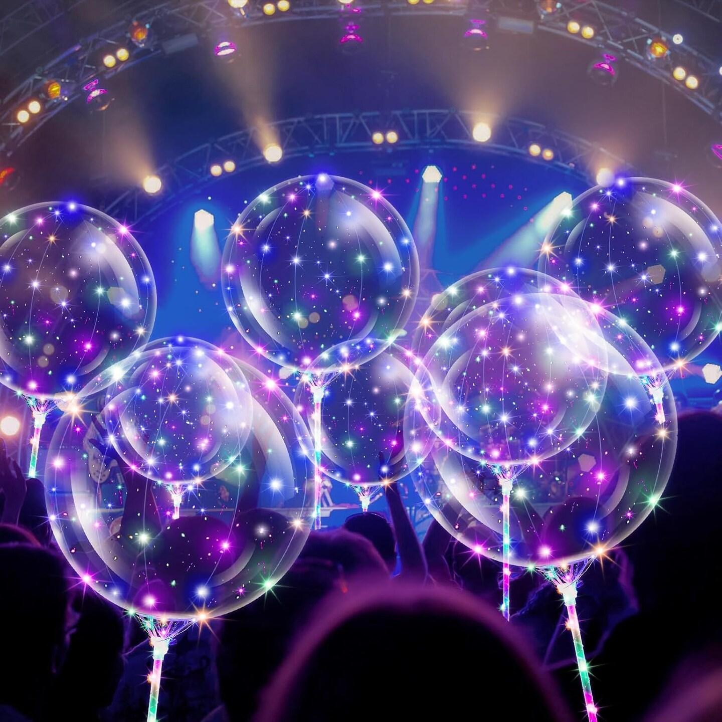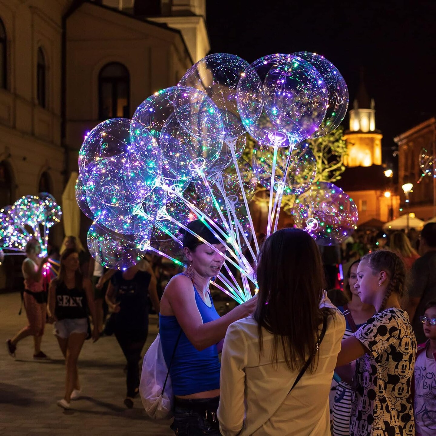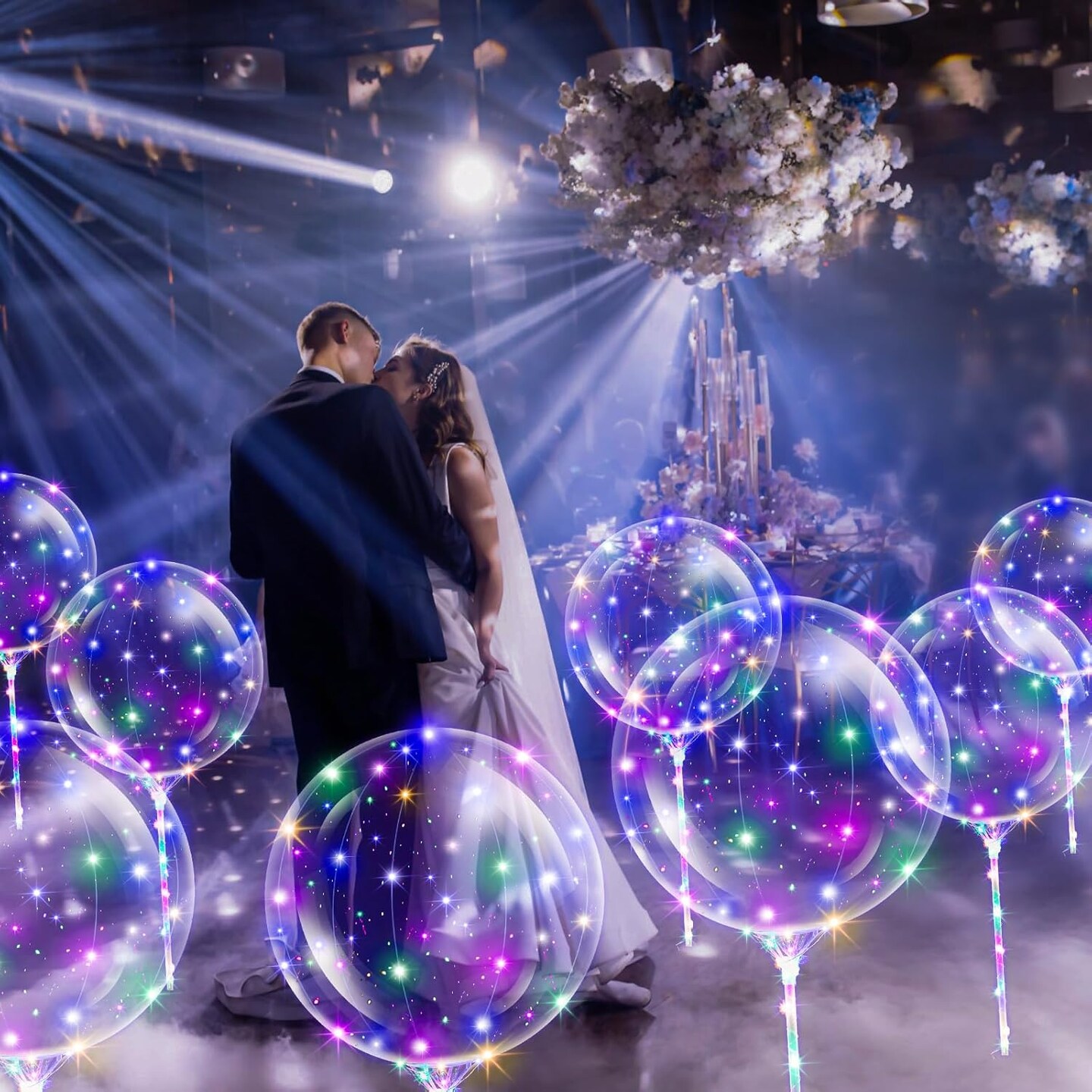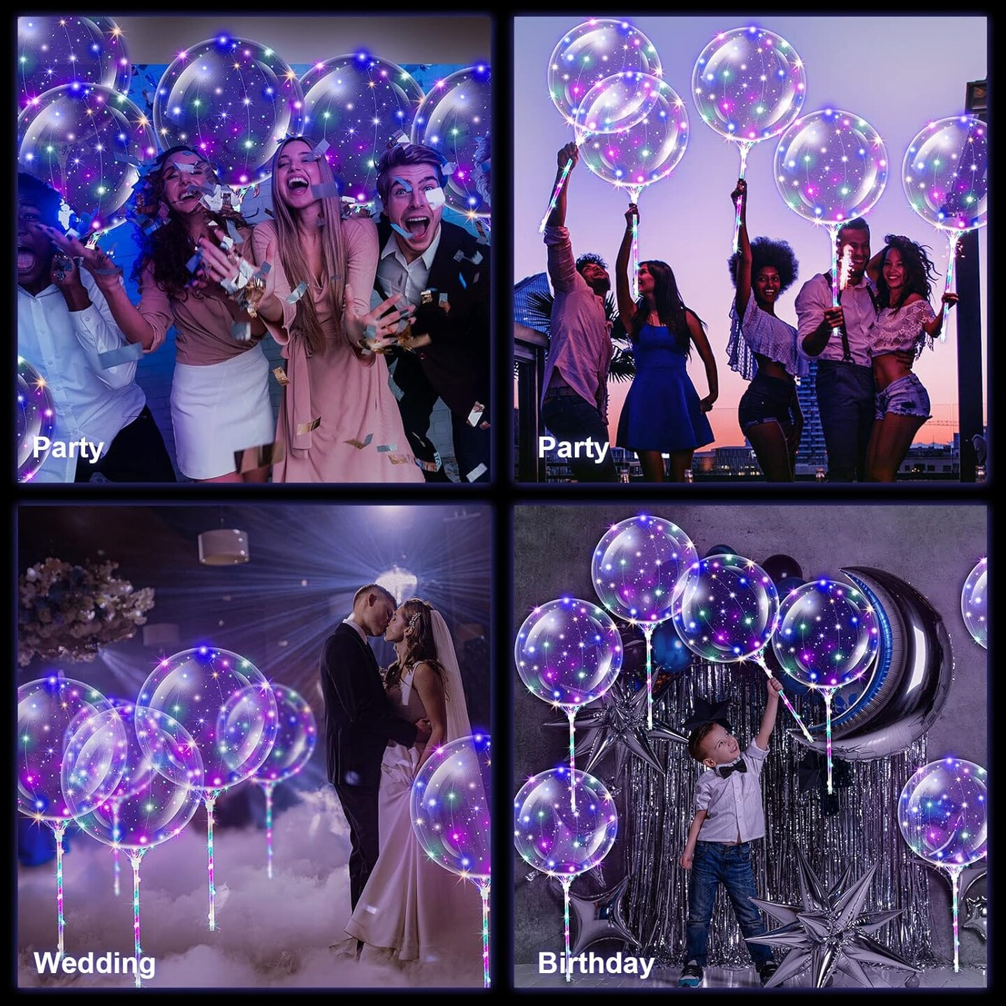 100 Pcs LED Balloons 20 Inches LED Bobo Light Flashing Glow Clear Transparent Balloon with Handles and String Lights for Birthday Xmas Wed Decor(Colorful)